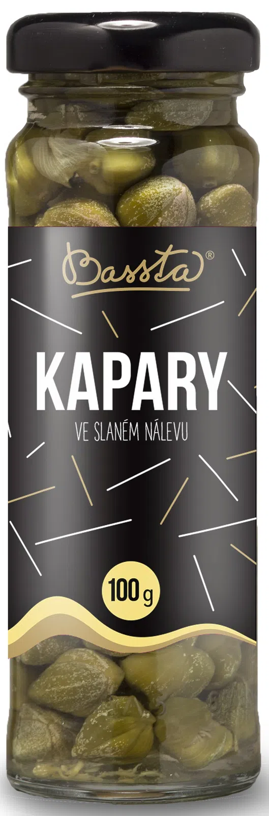Kapary v slanokyslom náleve Bassta sú jemné puky kríky kapary tŕnisté, naložená v soľnom roztoku pre zachovanie ich výraznej chuti.