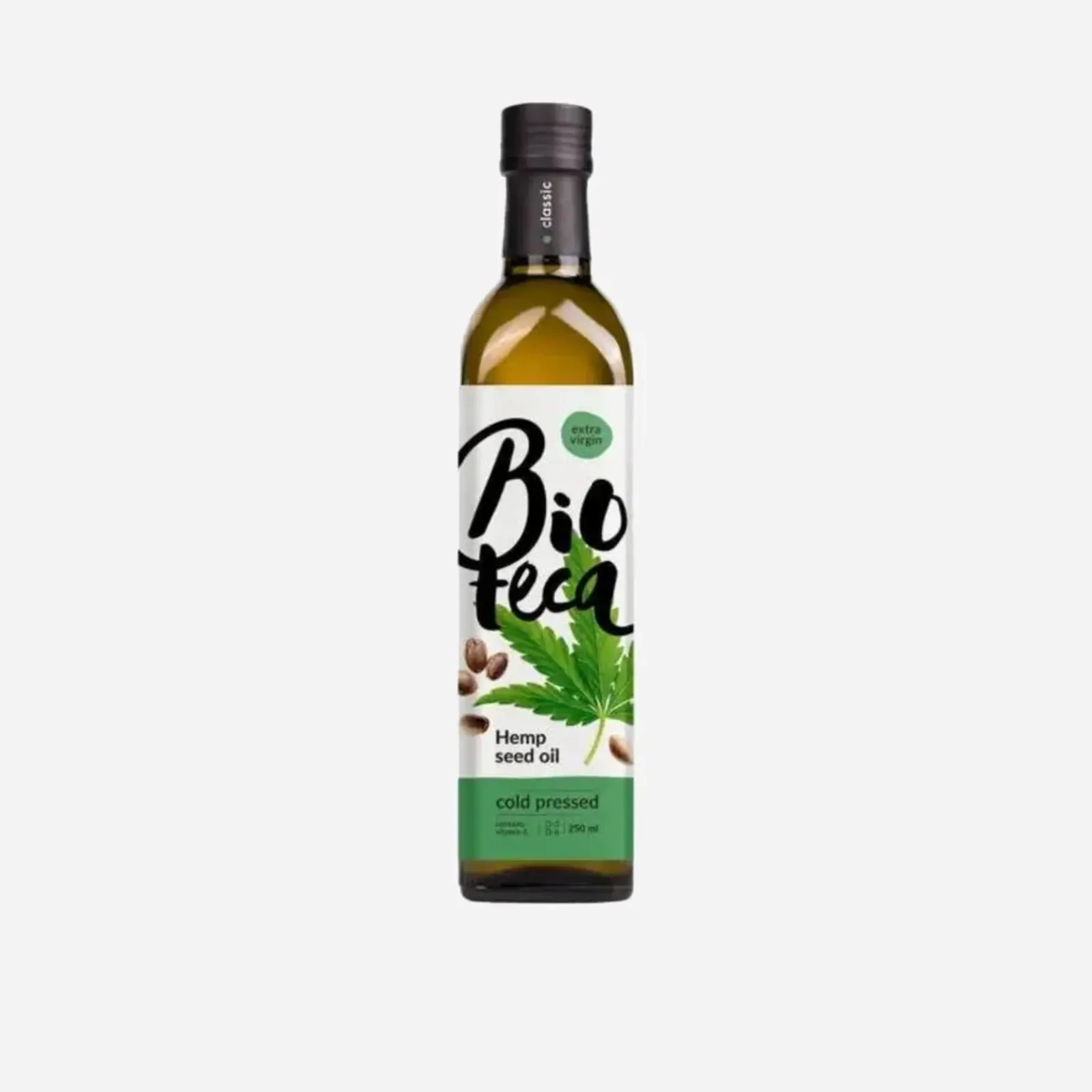 Olej z konopných semienok, extra panenský, lisovaný za studena, nerafinovaný, 100% prírodný.