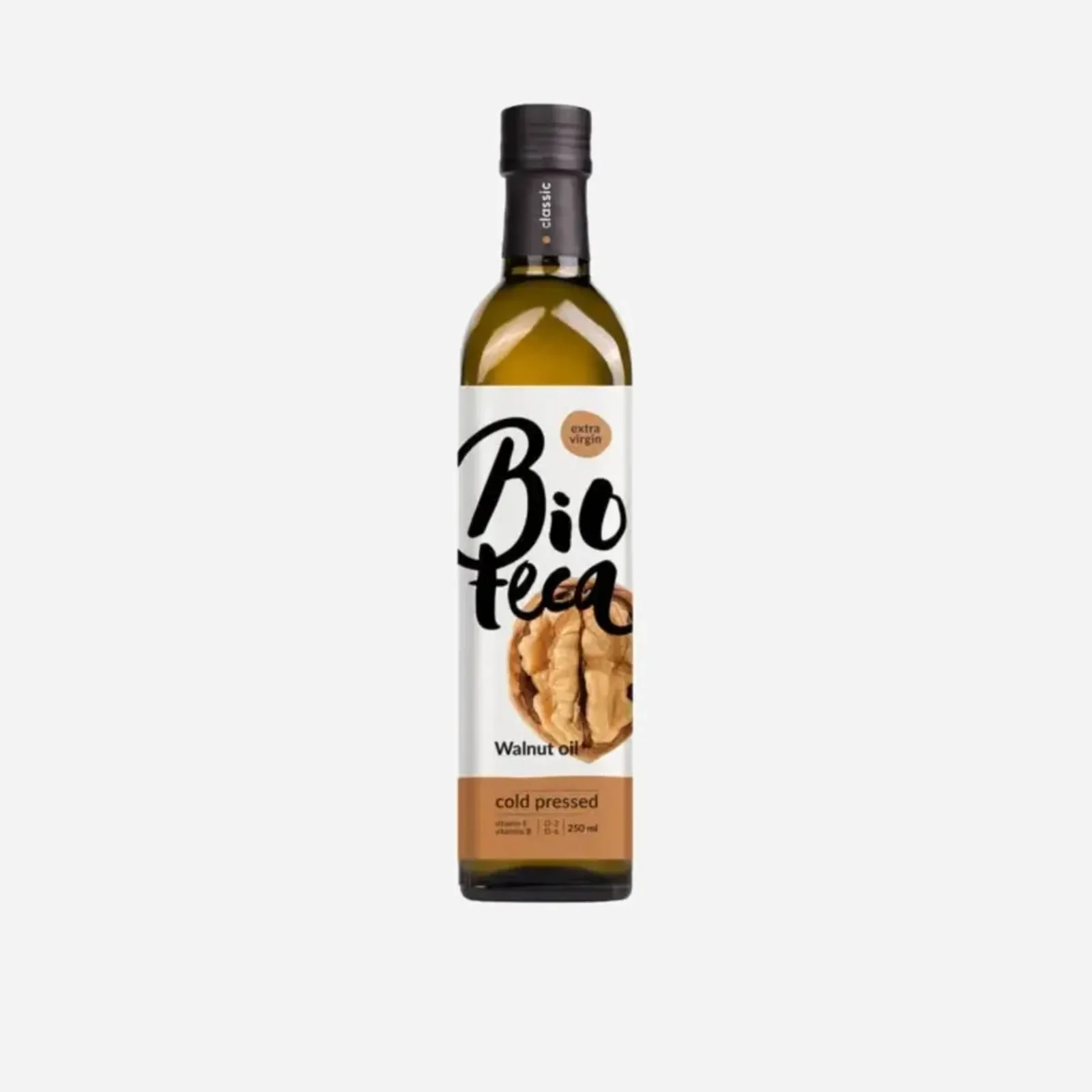 Olej z vlašských orechov, extra panenský, lisovaný za studena, nerafinovaný, 100% prírodný.