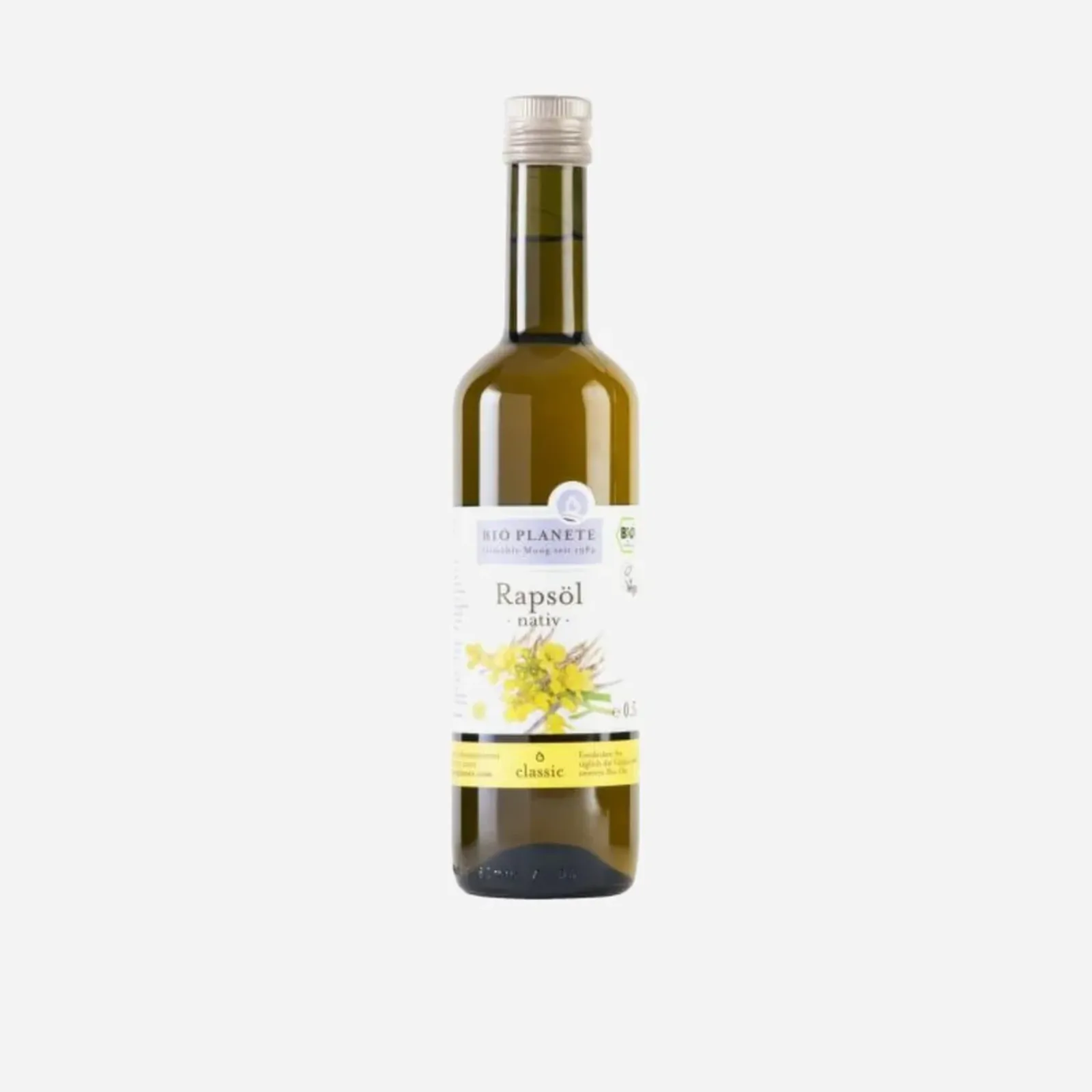 Repkový panenský olej tmavo žltej farby a neutrálnej chuti v biokvalite. Lisovaný za studena bez použitia chemikálií.