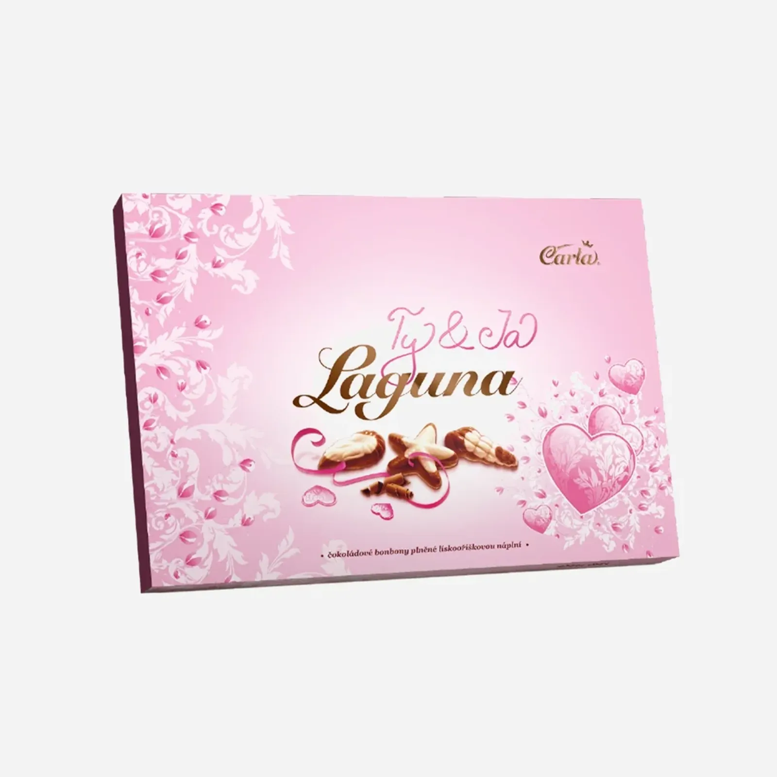 Tieto pralinky z jemnej mliečnej a bielej čokolády v tvare morských plodov v sebe ukrývajú lahodnú lieskovoorieškovú náplň. Pokiaľ hľadáte sladké potešenie alebo darček pre svojich blízkych, pralinky Laguna sú ideálnou voľbou.