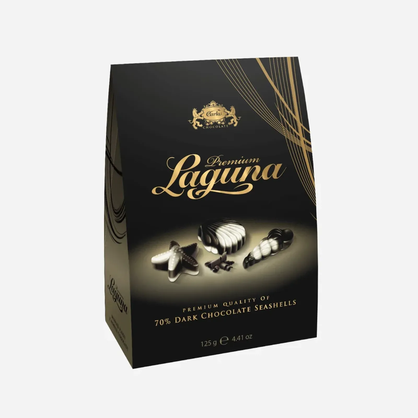 Vnútri čokoládových morských plodov objavíte jemnú lieskovoorieškovú náplň, ktorá obsahuje 55% kakaa. Pokiaľ hľadáte sladké potešenie alebo darček pre svojich blízkych, pralinky Laguna Premium sú ideálnou voľbou.