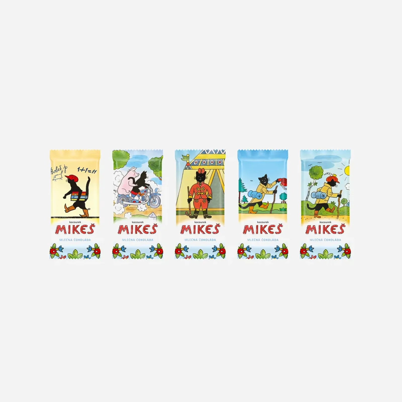 Mliečna čokoláda, ktorá poteší nielen maškrtné jazýčky. Každá čokoládička má na obale jeden z piatich obrázkov kocúrika Mikeša v rôznych veselých situáciách. Najviac ju ocenia deti, či už ako sladkosť alebo na doplnenie energie na výletoch alebo v škole.