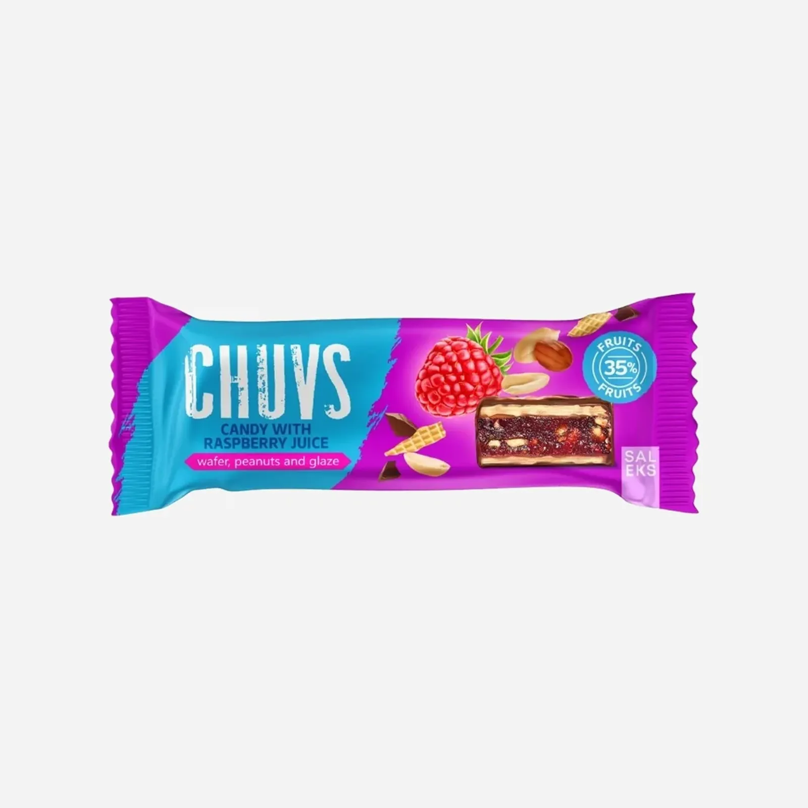Tyčinky Chuvs sú revolučnou kombináciou bohatej chuti a energie. Svieža a nezameniteľná kombinácia ingrediencií prináša šťavu do každodenného života. Každá tyčinka obsahuje pestré zloženie vrátane šťavnatého ovocia, chrumkavých orieškov a bohatej kakaovej polevy.