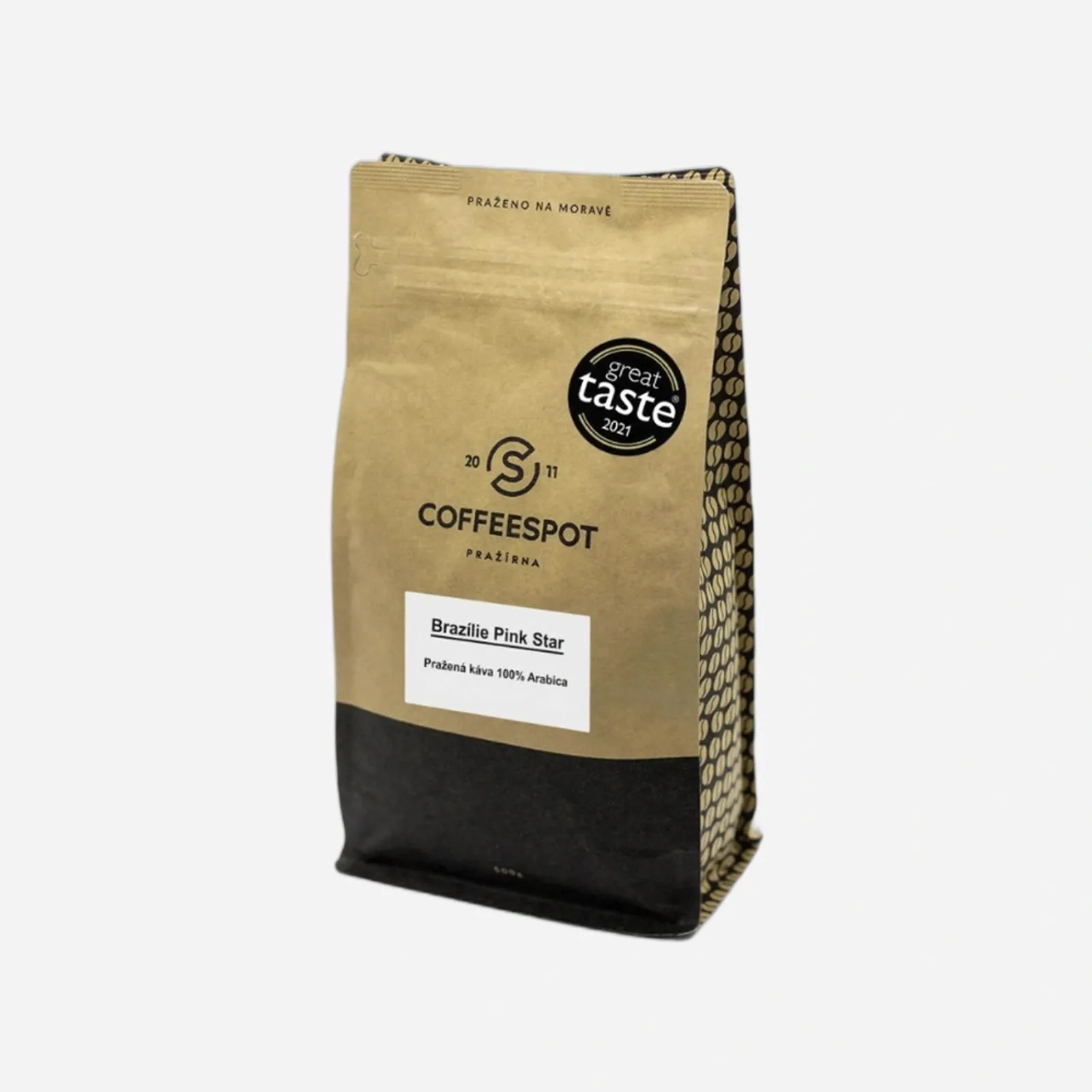Brasil Pink Star vyniká intenzívnou čokoládovou chuťou, bez kyslosti a výrazným telom. Ekologicky spracovaná brazílska káva z rodinných fariem. Zrnková káva. 100% Arabica.