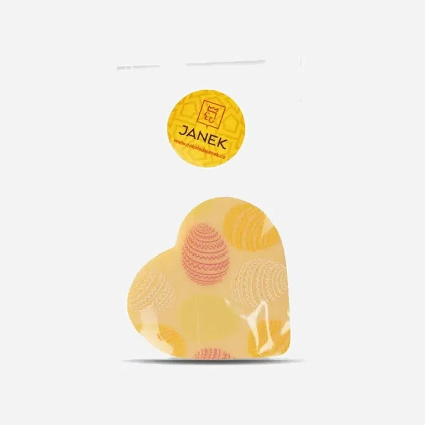Čokoládovna JANEK Biele čokoládové srdiečko s veľkonočnou potlačou, 14 g