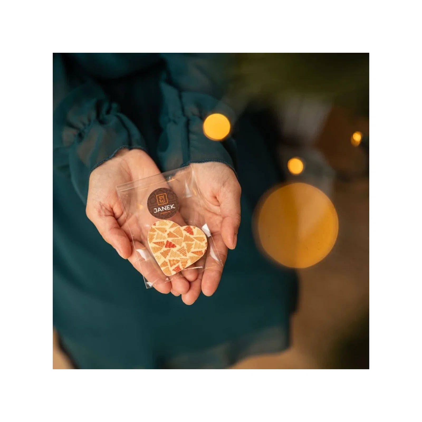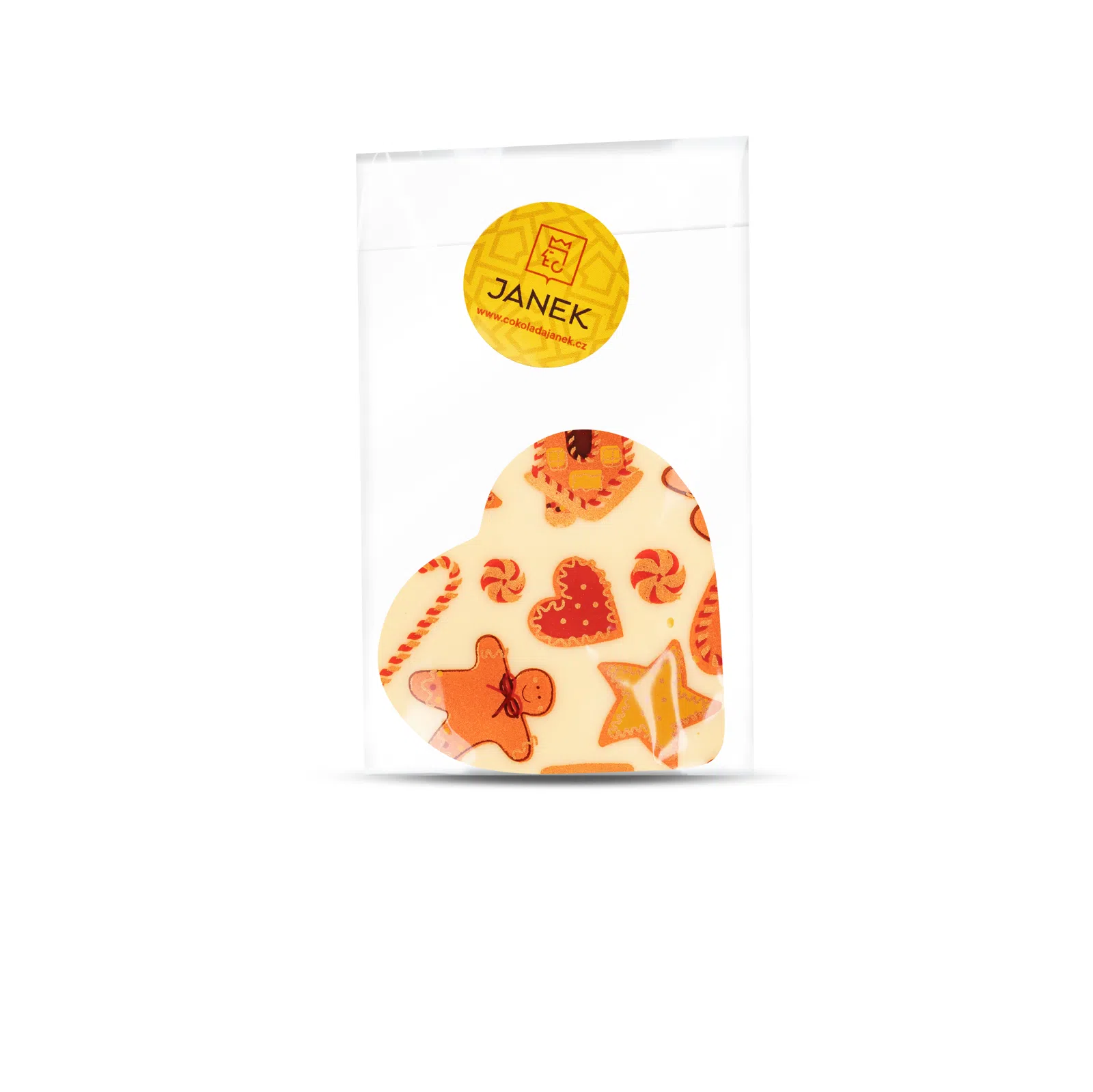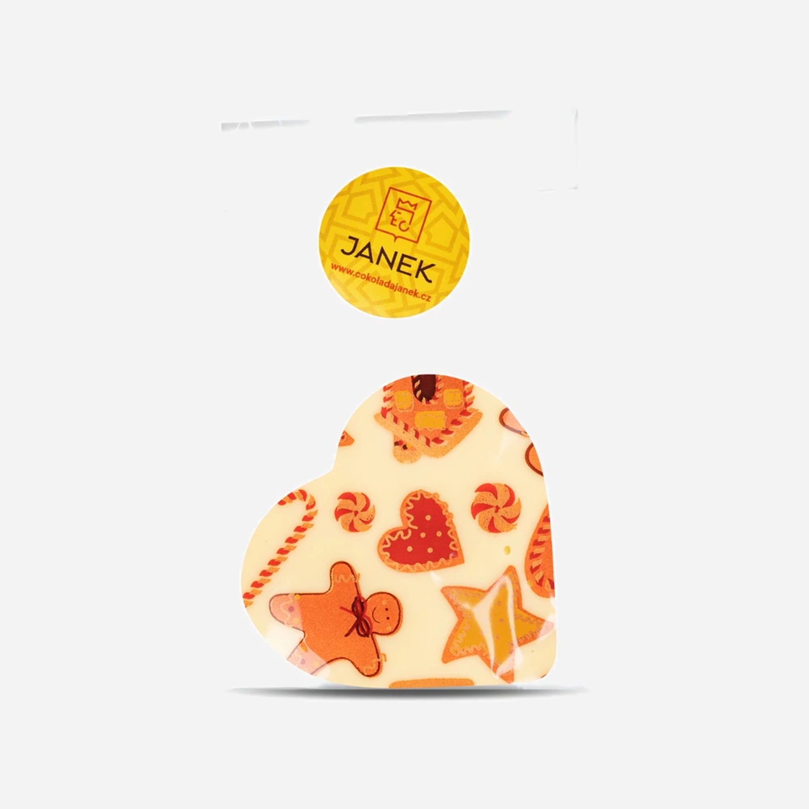 Čokoládovna JANEK Čokoládovna Janek Bílé čokoládové srdíčko s vánočním potiskem, 14 g