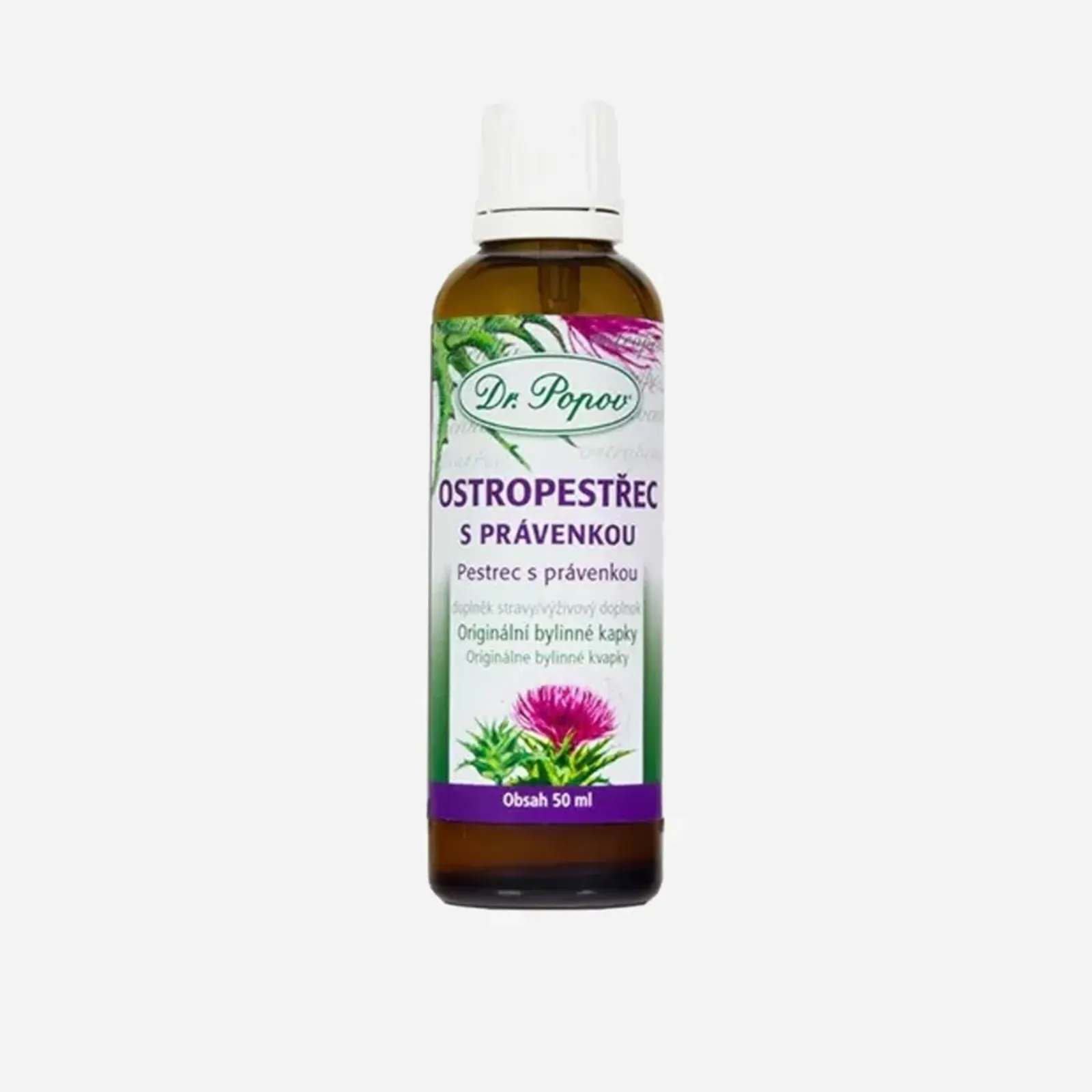 Zloženie: Voda, jemný kvasný lieh (alk. 35 % obj.), pestrec mariánsky plod, právenka latnatá vňať.