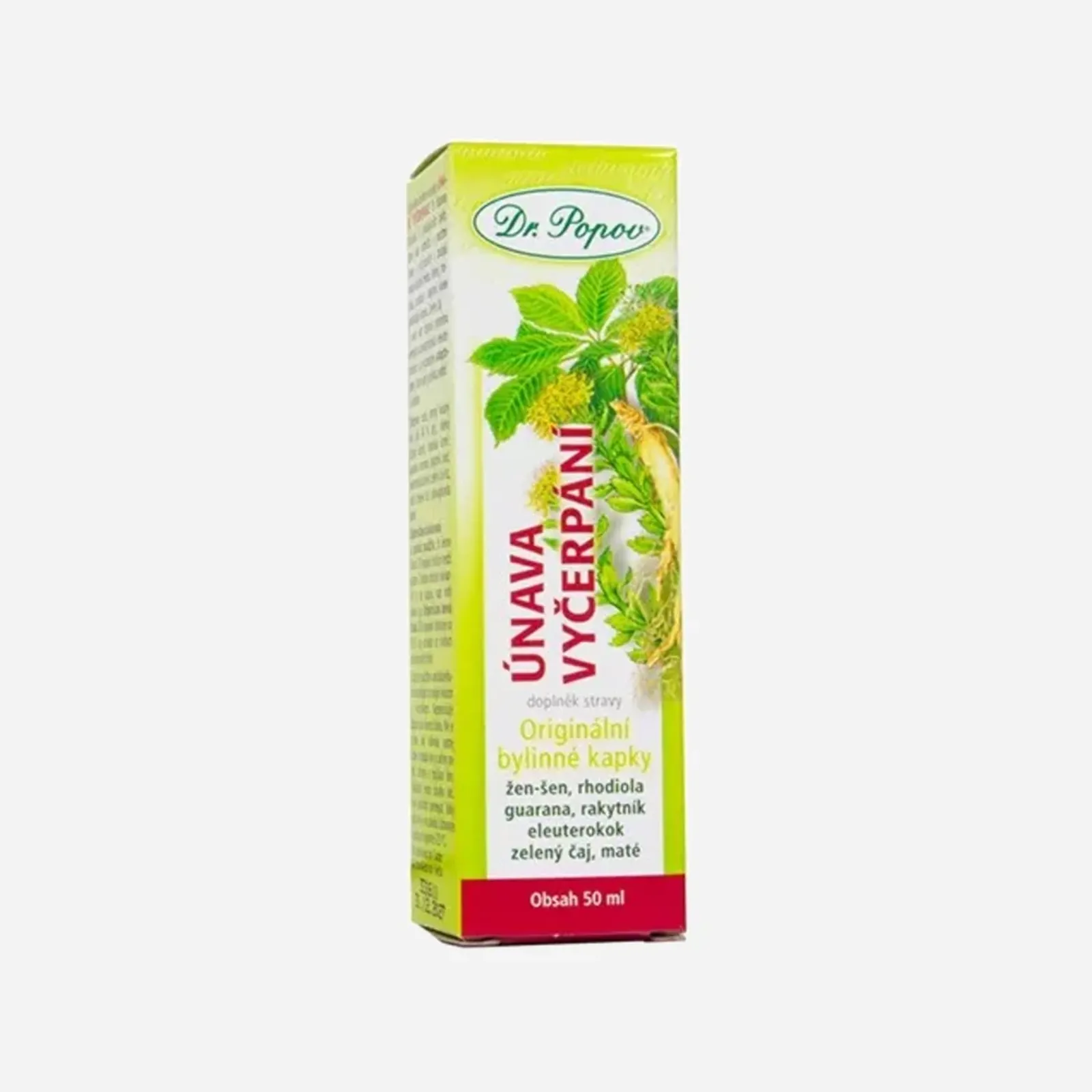 Originálna bylinná tinktúra Dr. Popova Únava vyčerpania obsahuje 8 vynikajúcich povzbudzujúcich bylín, ktoré vám pomôžu zahnať pocity únavy, vyčerpania či prepracovanosti. Dodajú novú silu do života. Podporí psychickú aj fyzickú vitalitu, vašu bdelosť, koncentráciu a výkonnosť. Načerpajte novú energiu, silu a veľa dobrej nálady.