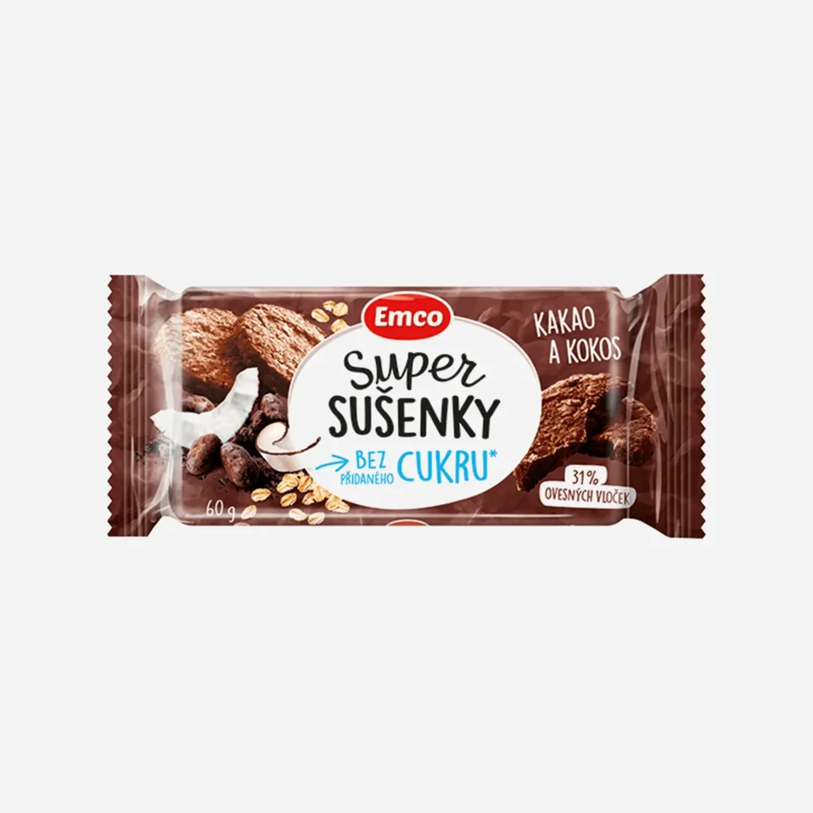 Super sušienky sú krehké ovsené sušienky s vysokým obsahom ovsených vločiek, ktoré neobsahujú žiadny pridaný cukor. Sušienky majú sladkú chuť vďaka kombinácii kokosu s kakaom a vláknine, ktorá sa získava z koreňa čakanky.