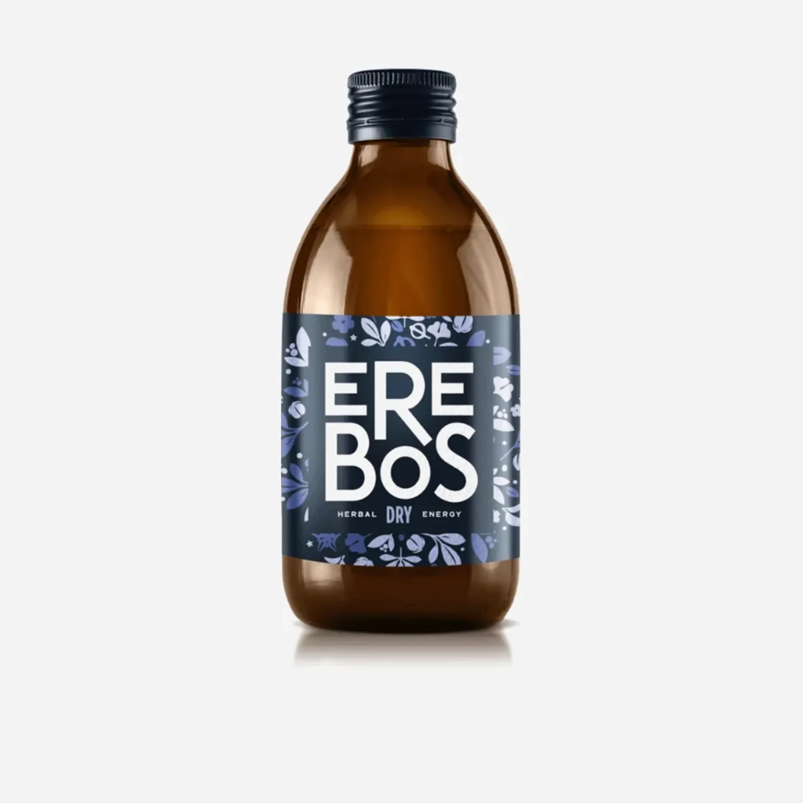 Zloženie: Výluh zo 7 bylín Erebos (maté, bicykle, guarana, rhodiola, materina dúška, kozinec, maral), esencia Erebos DRY (prírodná aróma, výluh z bylín a korenín), vitamín C, antioxidant: kyselina citrónová. Neobsahuje konzervanty, farbivá ani umelé arómy. Pred vypitím dôkladne pretrepte. Skladujte v chlade a tme. Po otvorení ihneď spotrebujte. Sedimentácia bylín je znakom prírodného charakteru nápoja. Nápoj s vysokým obsahom prírodného kofeínu (39 mg / 100 ml) - nie je vhodný pre deti a tehotné alebo dojčiace ženy. Kofeín iba z bylín. Originálna česká receptúra.