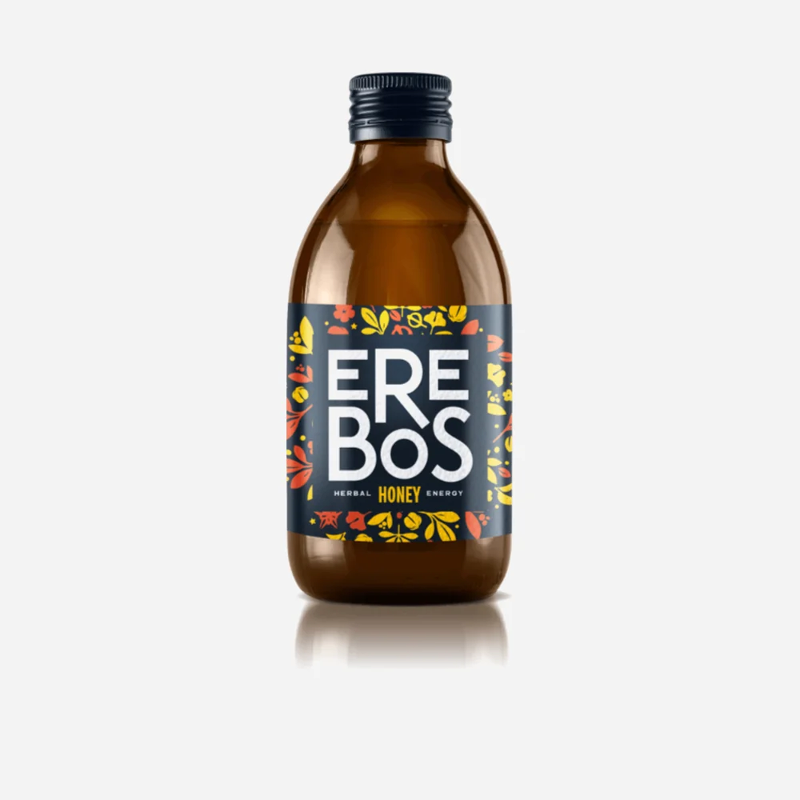 Zloženie: výluh zo 7 bylín Erebos (maté, kola, guarana, kotvičník, materina dúška, kozinec, maral), trstinový cukor, med (1%), esencie Erebos HONEY ™ (prírodná aróma, výluh z bylín a korenín), vitamín C, antioxidant: kyselina citrónová.