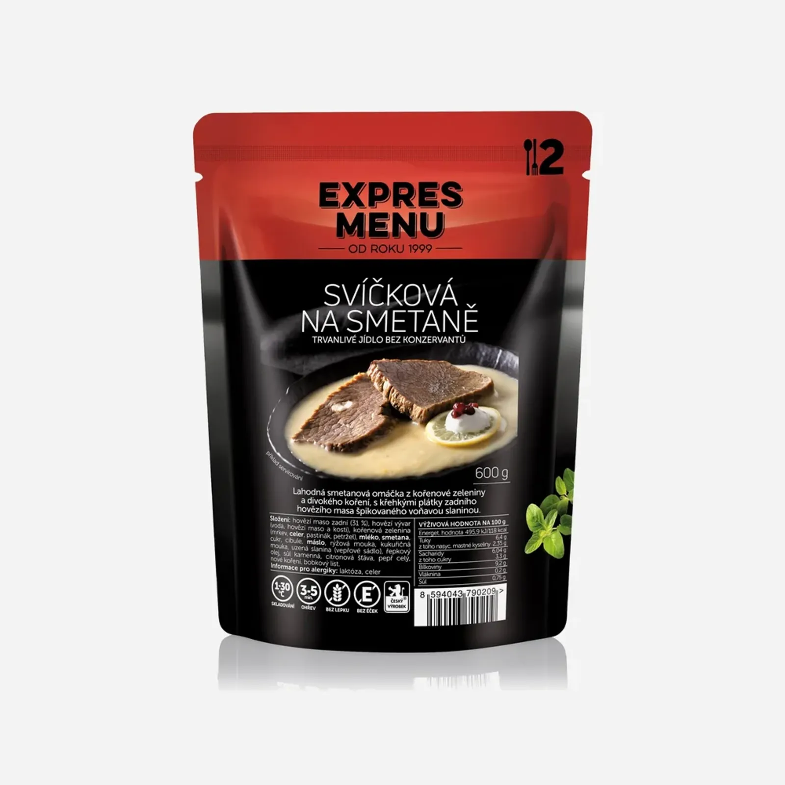 Lahodná smotanová omáčka z koreňovej zeleniny a divokého korenia, s krehkými plátkami zadného hovädzieho mäsa špikovaného voňavou slaninou.