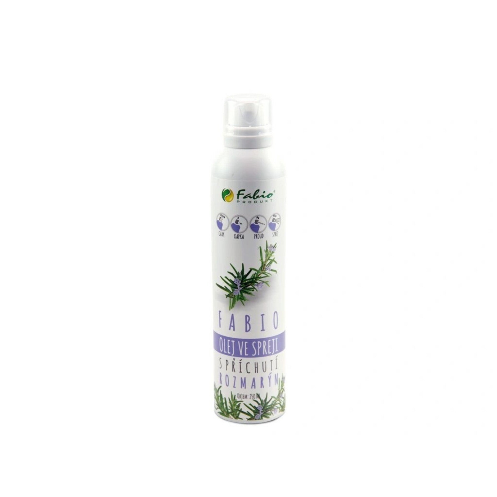 Olej v spreji Fabio s príchuťou rozmarínu je repkový olej ochutený extraktom korenia. Repkový olej je vhodný na každodenné použitie najmä vďaka priaznivému zloženiu mastných kyselín – konkrétne vysokému obsahu omega-3 nenasýtených mastných kyselín. Vďaka aplikácii pomocou spreja rovnomerne rozprestriete olej po celom jedle, pričom ďalšie 2 režimy rozprašovania (kvapka, prúd) vám výrazne uľahčia varenie.
