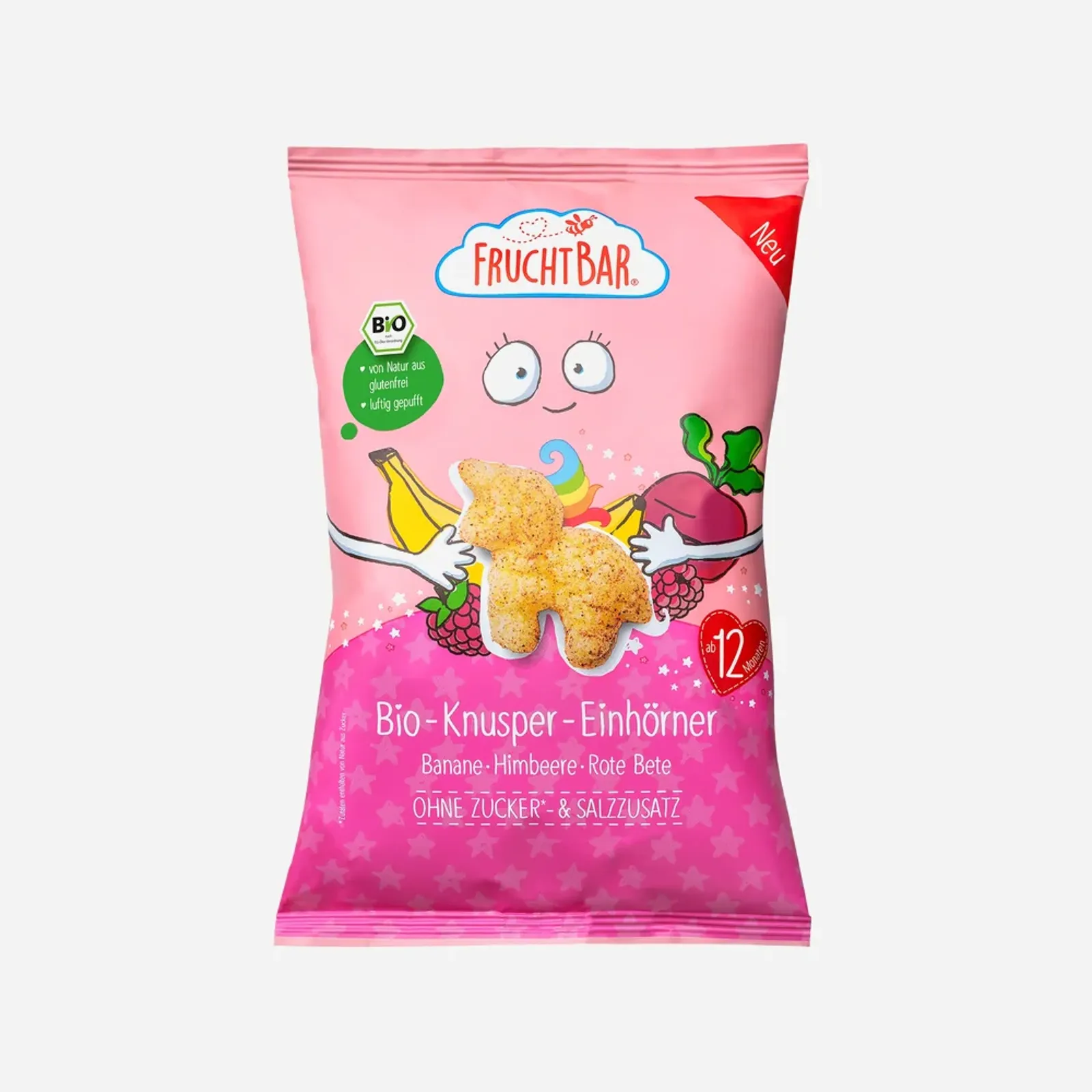FruchtBar Chrumky Jednorožec - Kukurica, banán, malina a repa BIO, 30 g