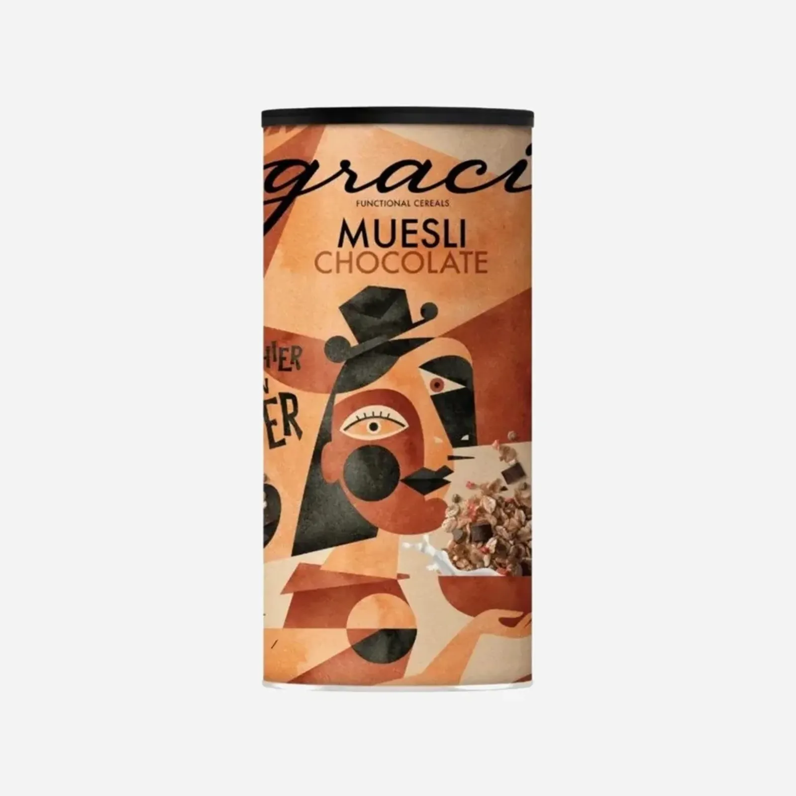 Graci müsli čokoládovej má chuť vyladenú k dokonalosti. Nájdete v ňom kúsky čokolády, čokoládové hobliny aj ryžové vločky s kakaom.
