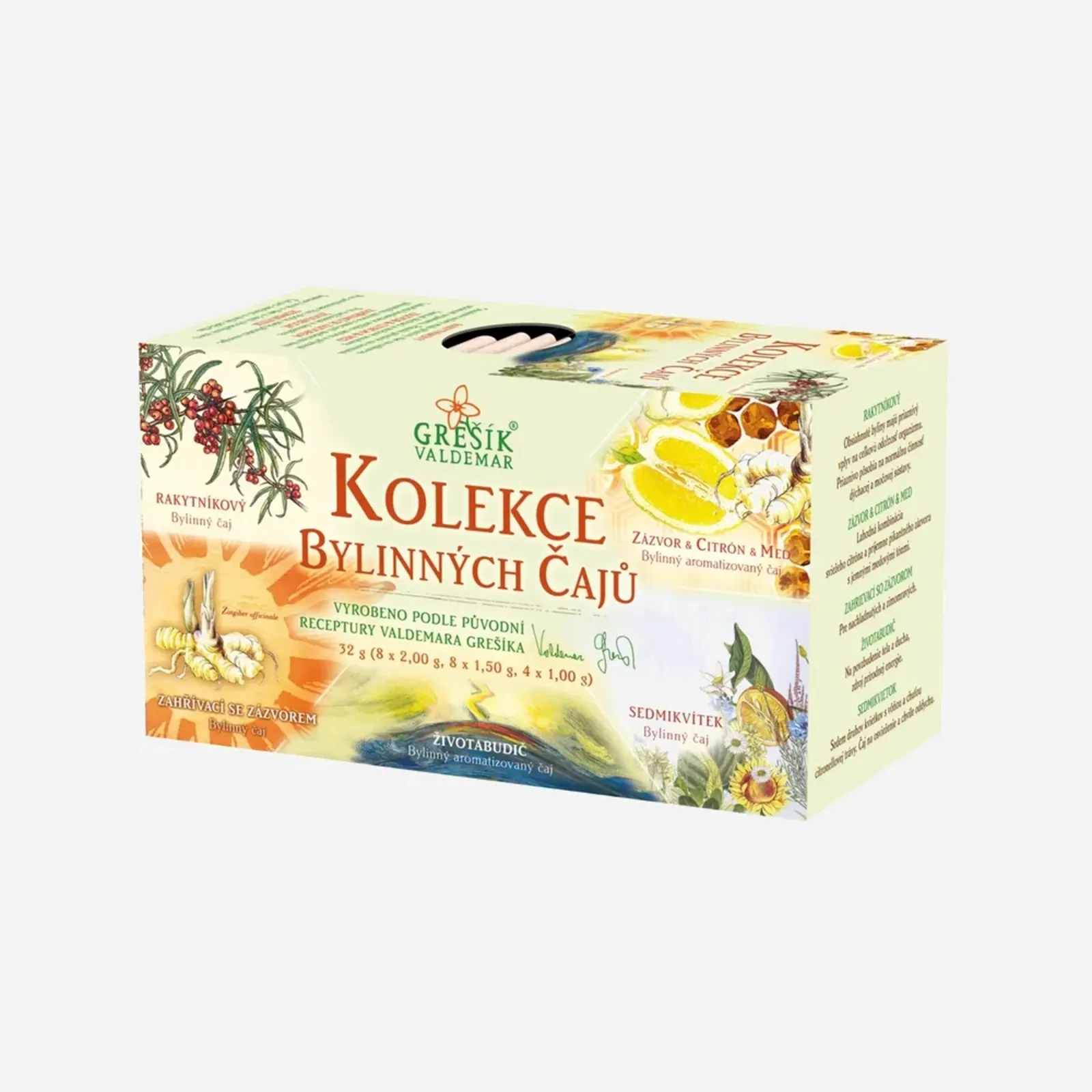 Kolekcia obsahuje 5 druhov bylinných čajov: Rakytníkový, Zázvor & Citrón & Med, Zahrievací so zázvorom, Životabudič a Sedmokvietok