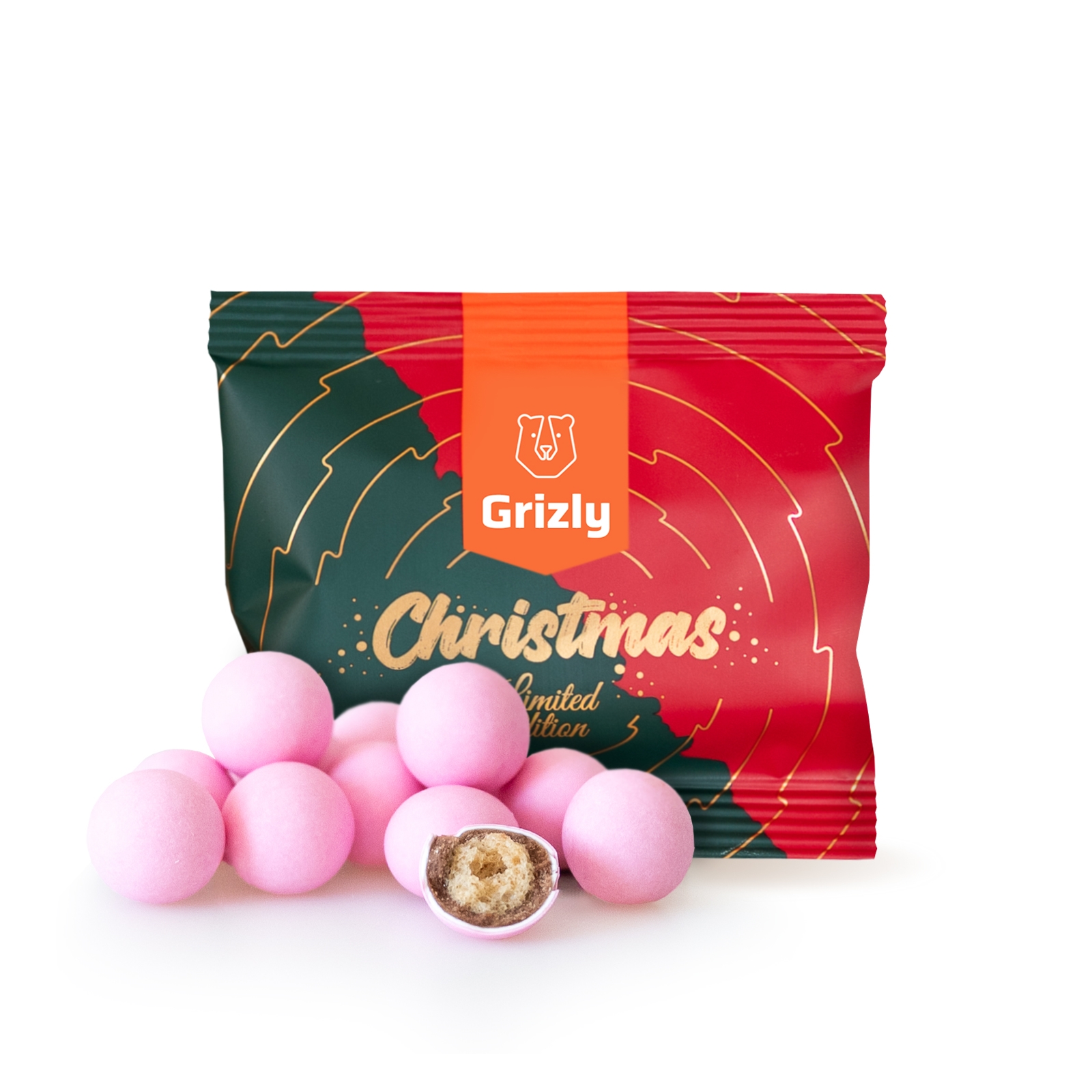 GRIZLY Chrumkavé snehové guličky ružové 100 g