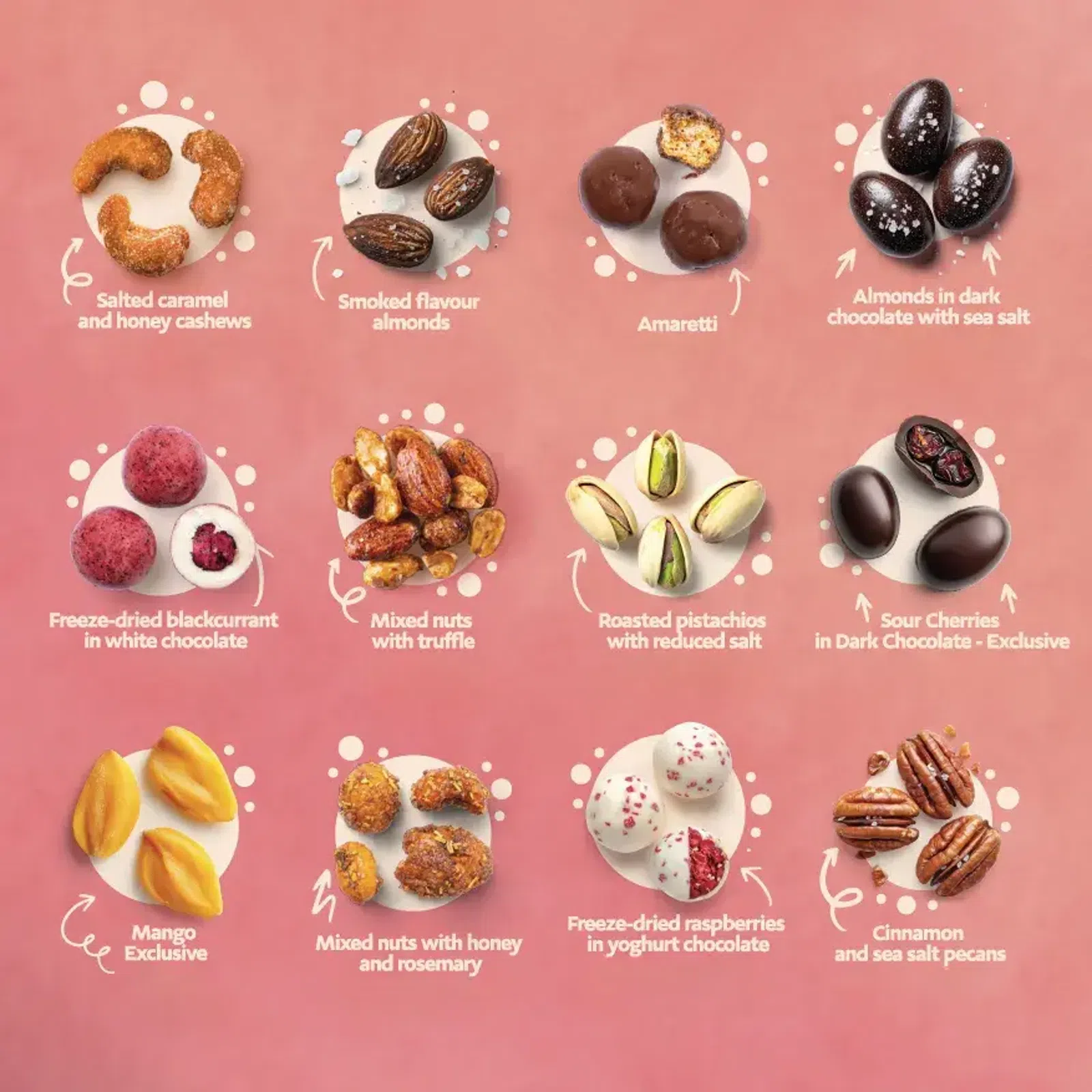 GIFT BOX With love je plný lahodných orechov, čokolád a sušienok, ktoré potešia každého milovníka kvalitných dobrôt. Perfektný darček pre vašich blízkych alebo ako zaslúžený zážitok pre vás.