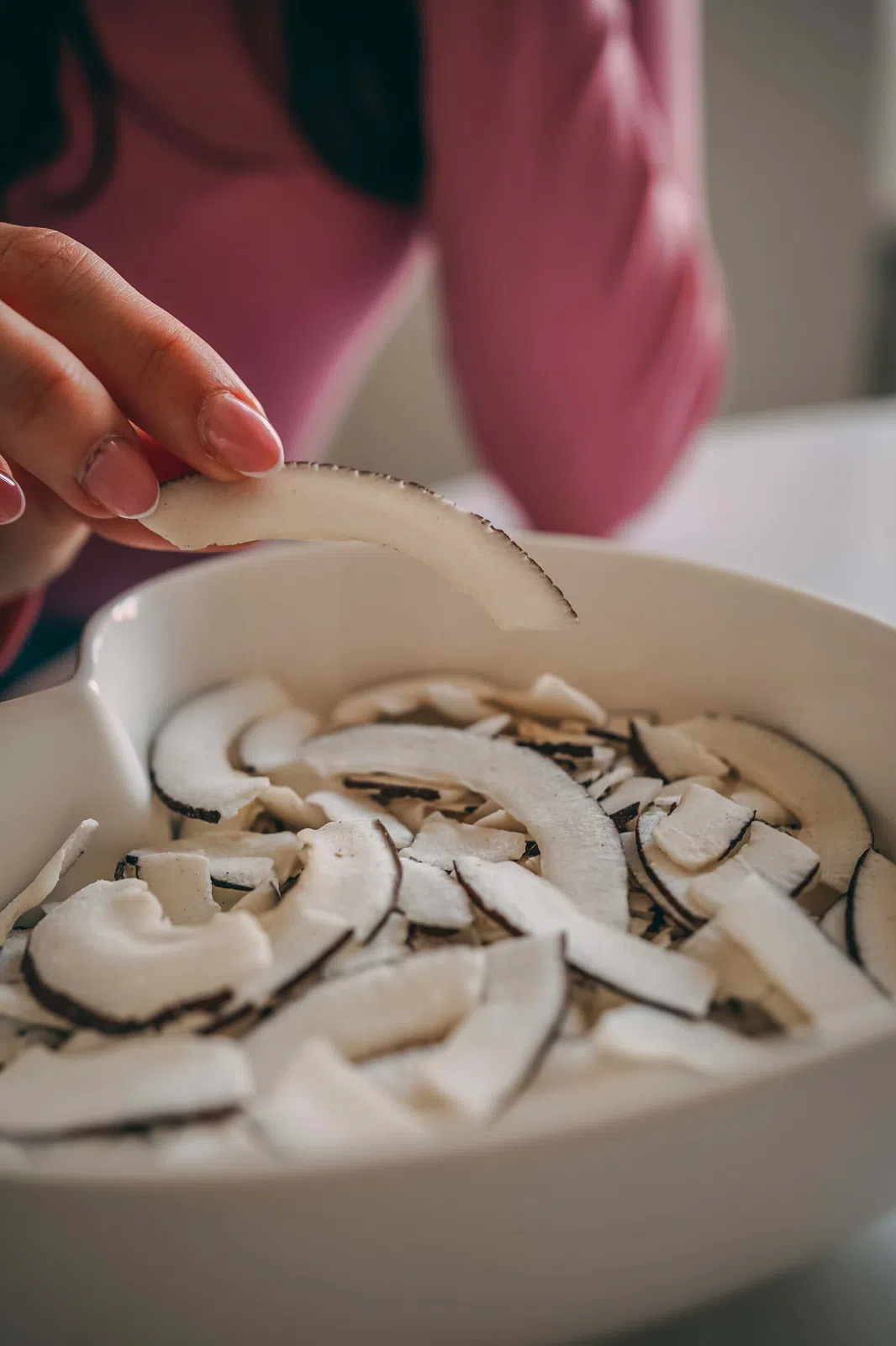 Pokiaľ máte radi kokos v akejkoľvek podobe, vyskúšajte aj tieto tenké plátky so šupkou. Prekvapí vás výraznou vôňou a poriadnou kokosovou chuťou. Vďaka vyššiemu obsahu tuku sú naozaj vláčne a tak ich bez problémov môžete ponúknuť deťom i dospelým, napríklad ako chutnú desiatu. Odporúčame taktiež kreatívne využiť plátky pri príprave jedál. Skúste s nimi ozdobiť dezerty, pečené aj nepečené. Pridajte ich do domácej granoly, nasypte na rannú kašu alebo si vytvorte vlastnú zmes s orieškami a sušeným ovocím. Jednoducho čokoľvek vás napadne.