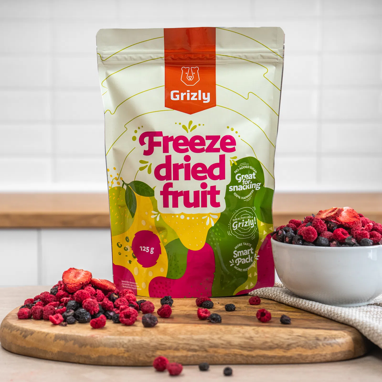 …lyofilizácia je proces sušenia hlbokým mrazom za veľmi nízkej teploty a tlaku? Dochádza tak k vysušeniu prirodzene obsiahnutej vody, preto je lyofilizované ovocie tak chrumkavé. Navyše si v maximálnej možnej miere zachová svoju pôvodnú farbu, chuť, vôňu a všetky minerálne látky a vitamíny.