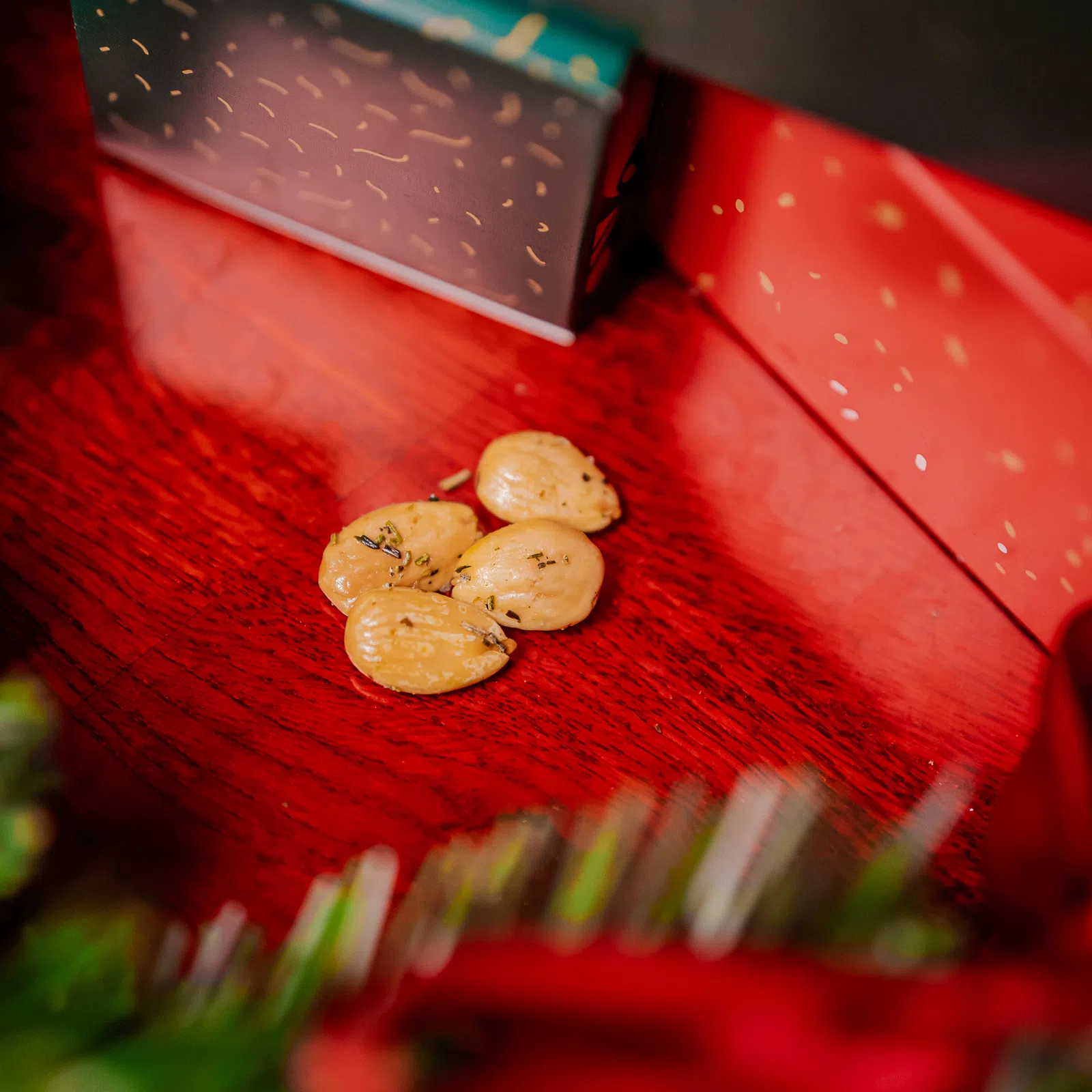 Chrumkavé bylinkové mandle zabalené v nádhernom balení s vianočným motívom rozdajú veľa radosti, a to nielen pod stromčekom.