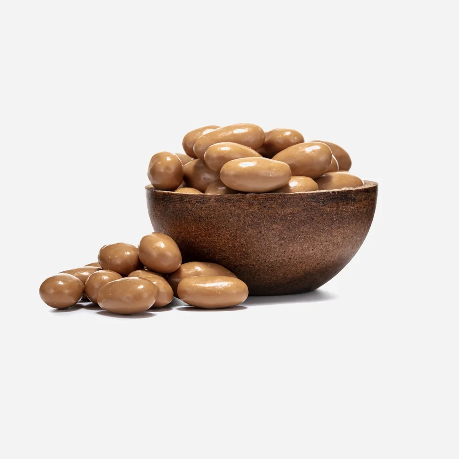 Pražené mandle obalené v lahodnej bielej čokoláde s karamelom musíte ochutnať! Osvedčia sa napríklad ako prísada do teplej kaše, kde sa čokoláda príjemne roztopí a dodá tak kaši karamelový nádych.