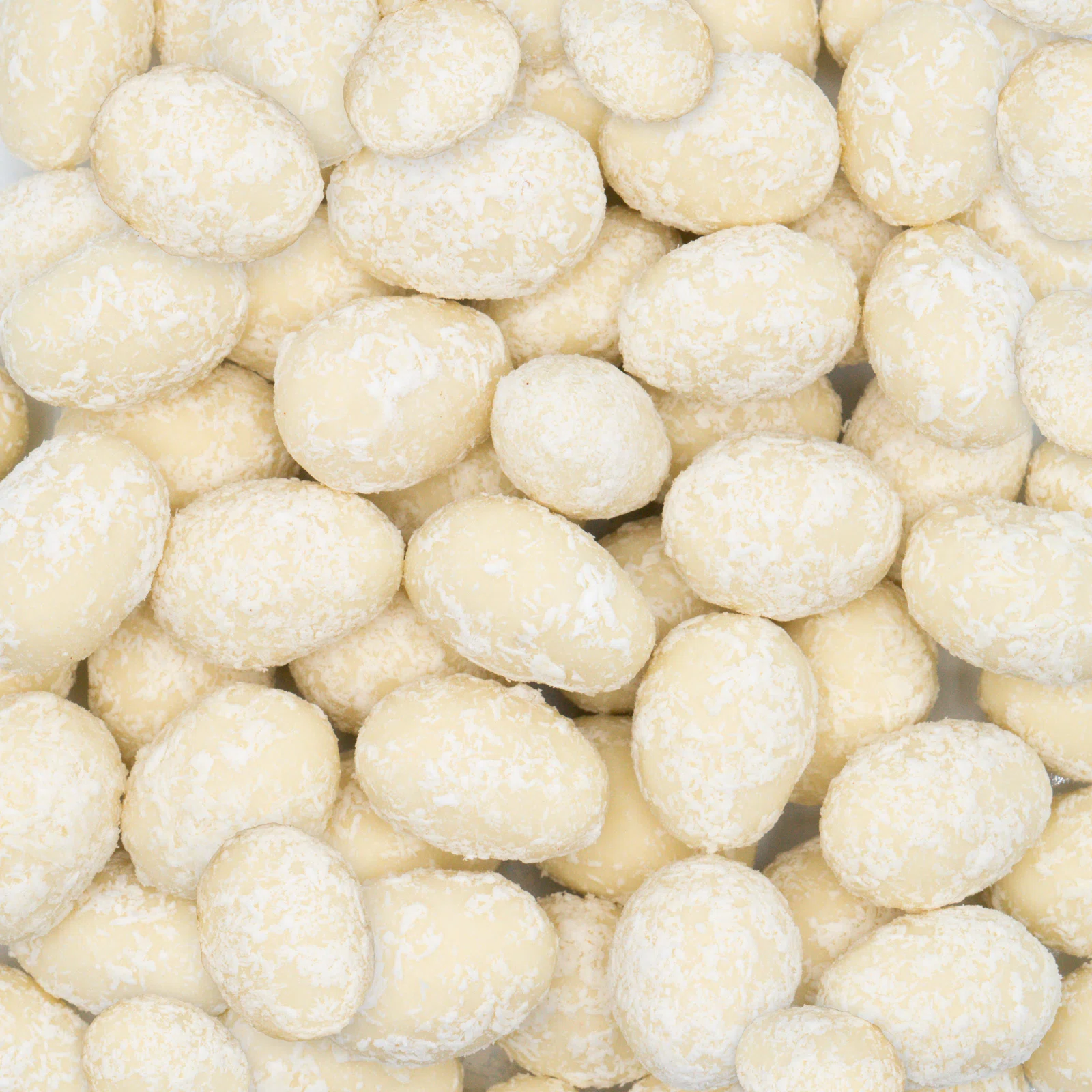 Zloženie: biela čokoláda 78 % (cukor, kakaové maslo, sušené mlieko, sušená smotana, emulgátor: lecitíny; prírodná vanilková aróma), jadrá mandlí pražená 18%, strúhaný kokos 3%, maltodextrín, cukor