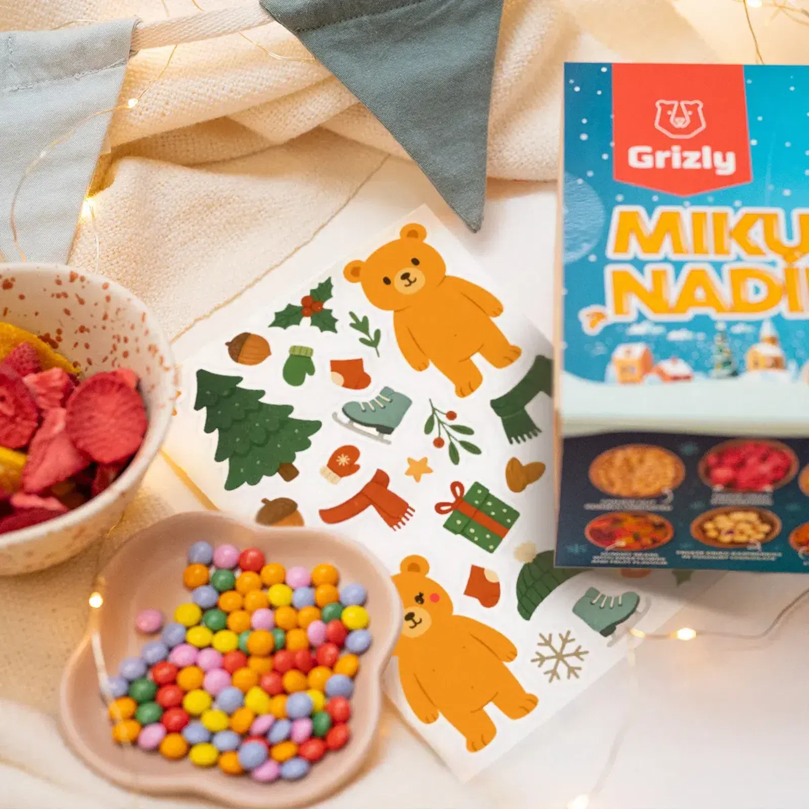 Sladké dobroty však nie sú v boxe osamotené. Na deti, ale pokojne aj dospelých, po jeho otvorení čaká prekvapenie – arch nálepiek s veselými medvedími motívmi! Môžete si ich spolu s deťmi vyzdobiť podľa svojho vkusu a vybrať sa s nimi na pomyselnú prechádzku zimnou krajinou.