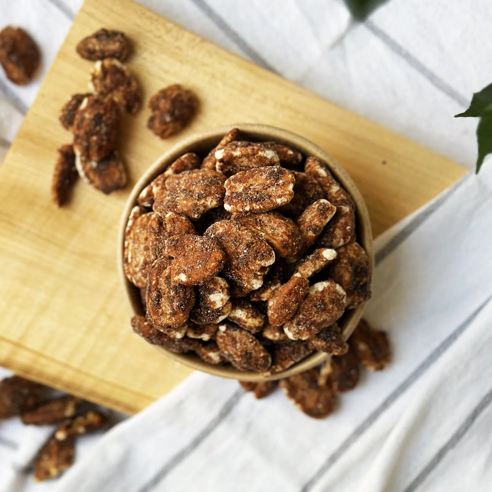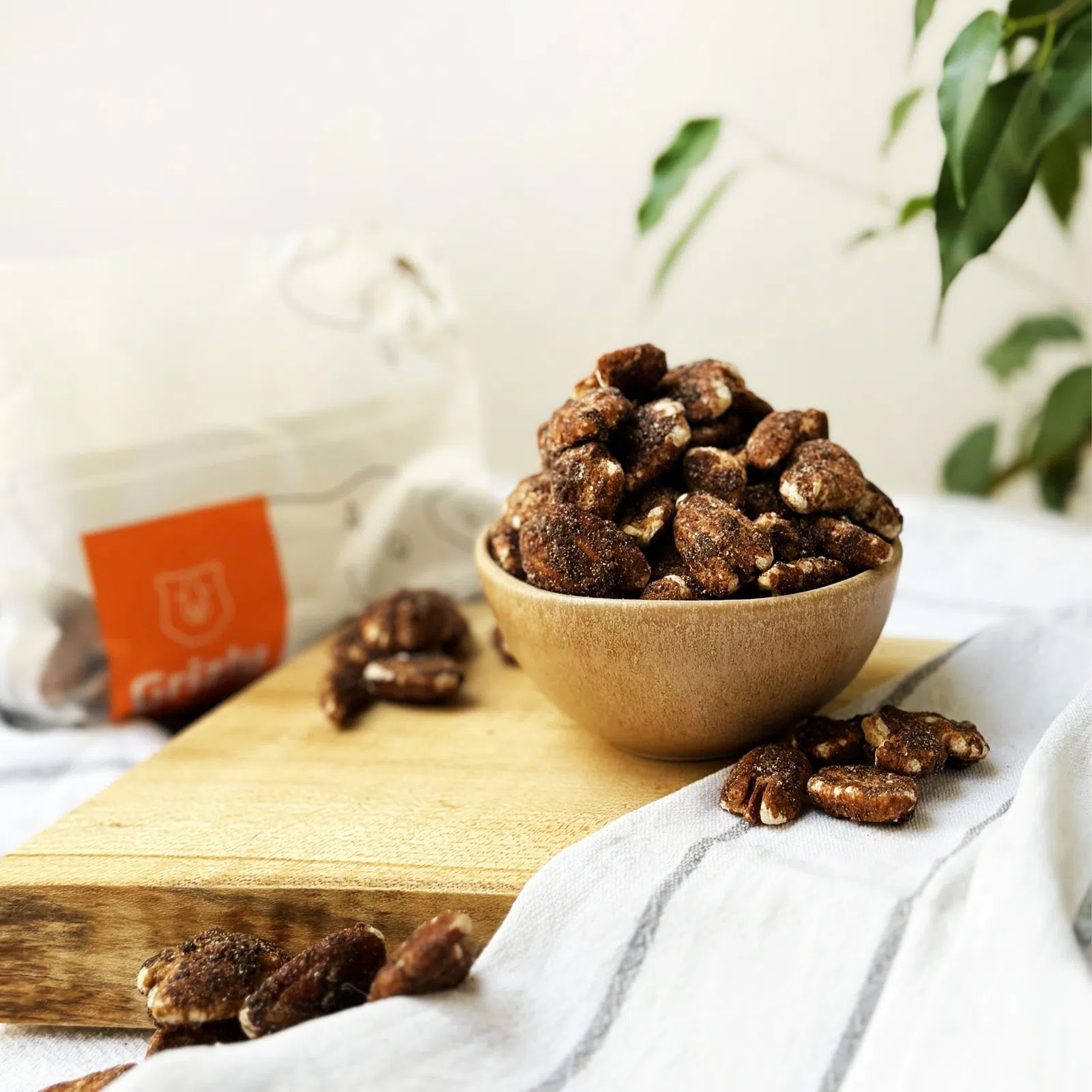 Na prvý pohľad sa javia ako vlašské orechy, ale nie! Netrafili ste sa! Sú to pekanové oriešky a nie len tak nejaké… Trošku sme ich vylepšili a ochutili ich škoricou a morskou soľou.