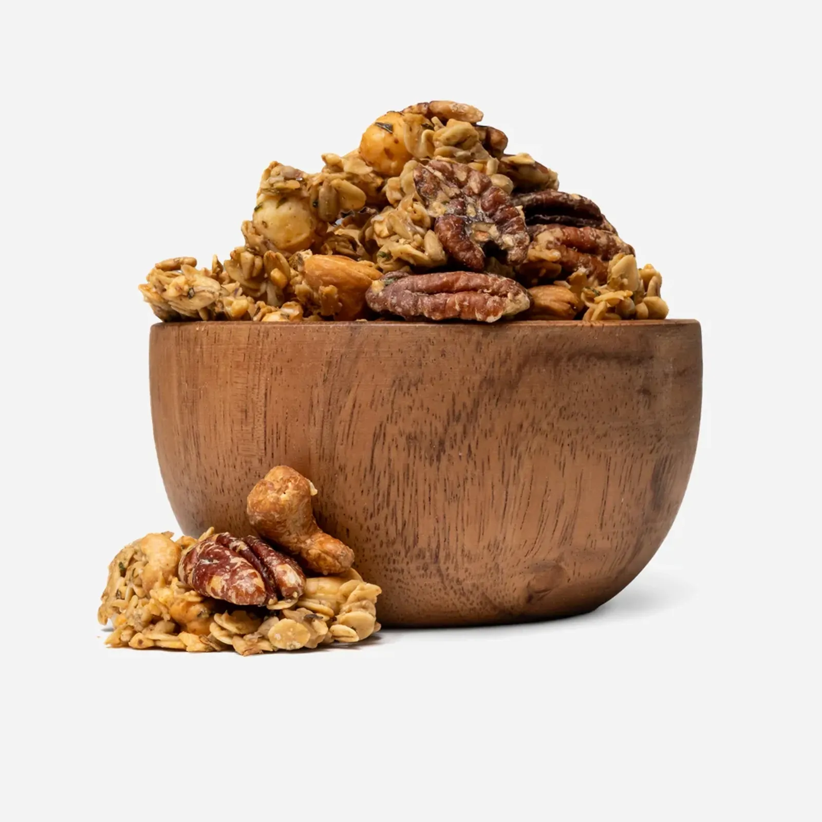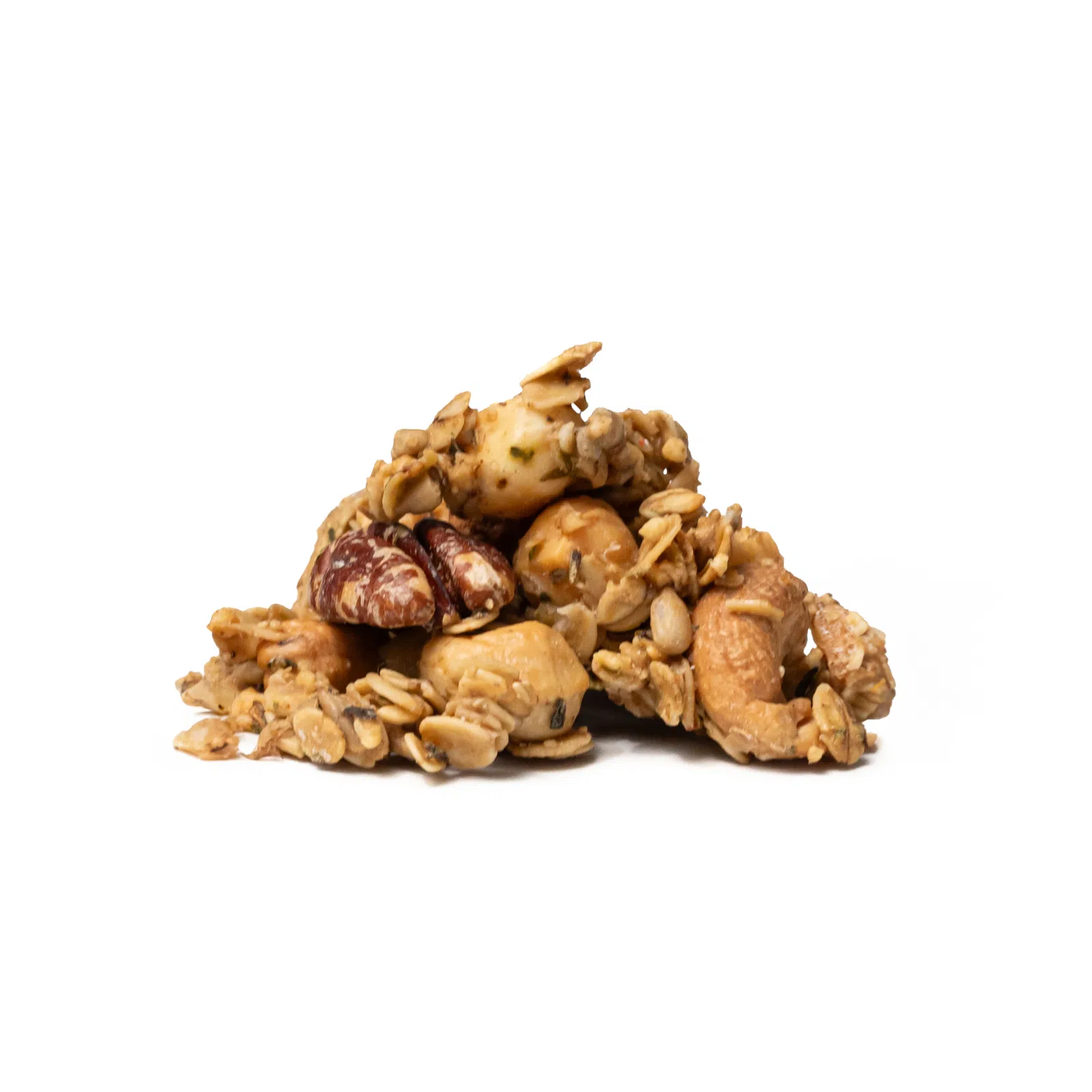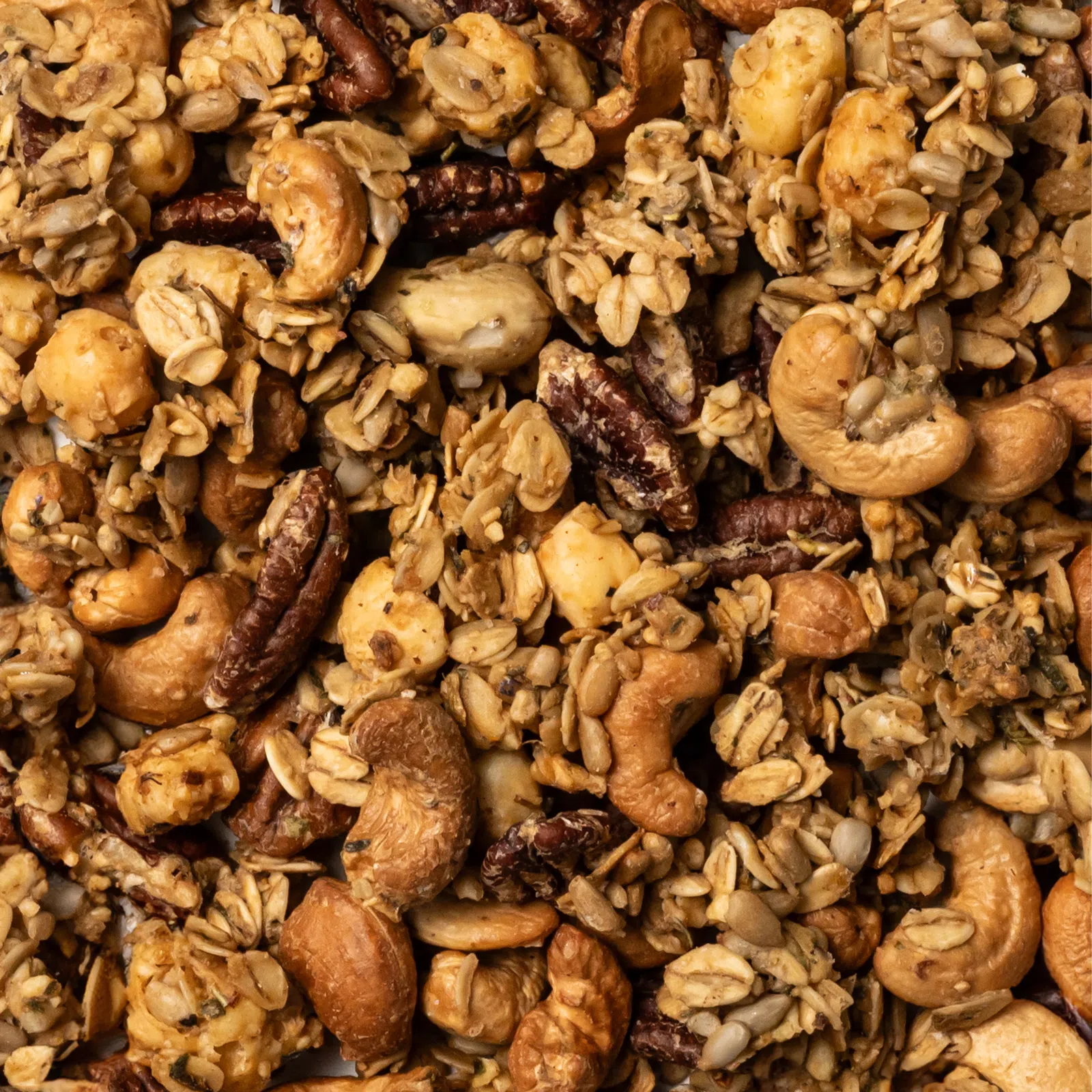 | Zloženie: | bezlepkové ovsené vločky 26 %, kešu orechy 23 %, pekanové orechy 19 %, slnečnicové semienka, sušená Gouda 8 % (mlieko, soľ, štartovacia kultúra, mikrobiálne syridlo), sušený Cheddar 6 % (mlieko, soľ, štartovacia kultúra, mikrobiálne syridlo), sušené droždie, olivový olej, himalájska soľ, sušený vaječný bielok, zmes korenia (morská soľ, cesnak, bazalka, pamajorán, medvedí cesnak, nechtík kvet, rozmarín, tymián, ružové lupene, chrpa kvet). |