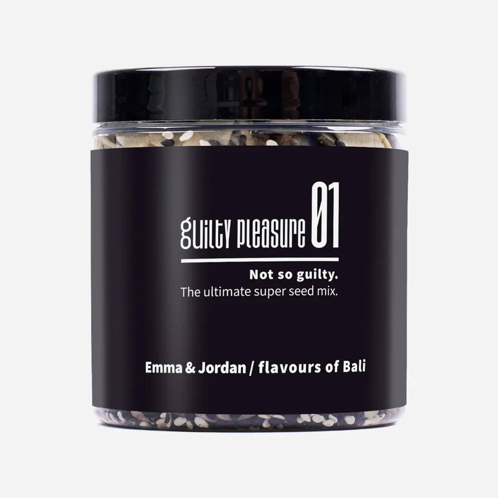 Exotické potešenie až z ďalekého Bali! Ochutnajte Guilty pleasure 01, teda semienkový mix z nového exkluzívneho radu Flavours of Bali od Emmy Smetany a Jordana Haje. Namiešali sme ho z čierneho sezamu, tekvicových semienok, bieleho sezamu, slnečnicového semienka a plátkov mandlí.