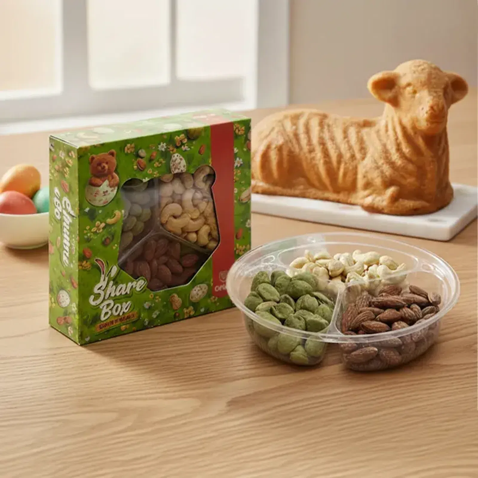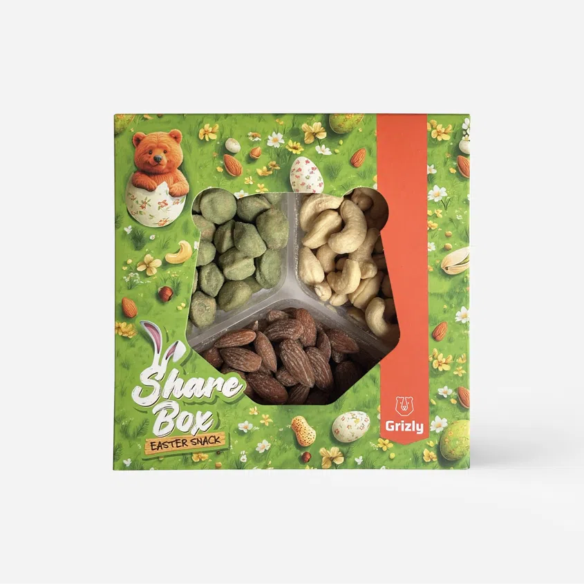 Vyvážená chuť v jednom boxe prináša kombináciu chutí, ktorá pokryje preferencie každého veľkonočného návštevníka. Od jemne údenej arómy mandlí cez poctivo solené kešu až po výrazné wasabi. Bestsellery v novej vylepšenej receptúre. Vďaka konceptu ready-to-serve navyše nemusíte riešiť misky – servírujete priamo v boxe, ktorý v okamihu oživí váš stôl.