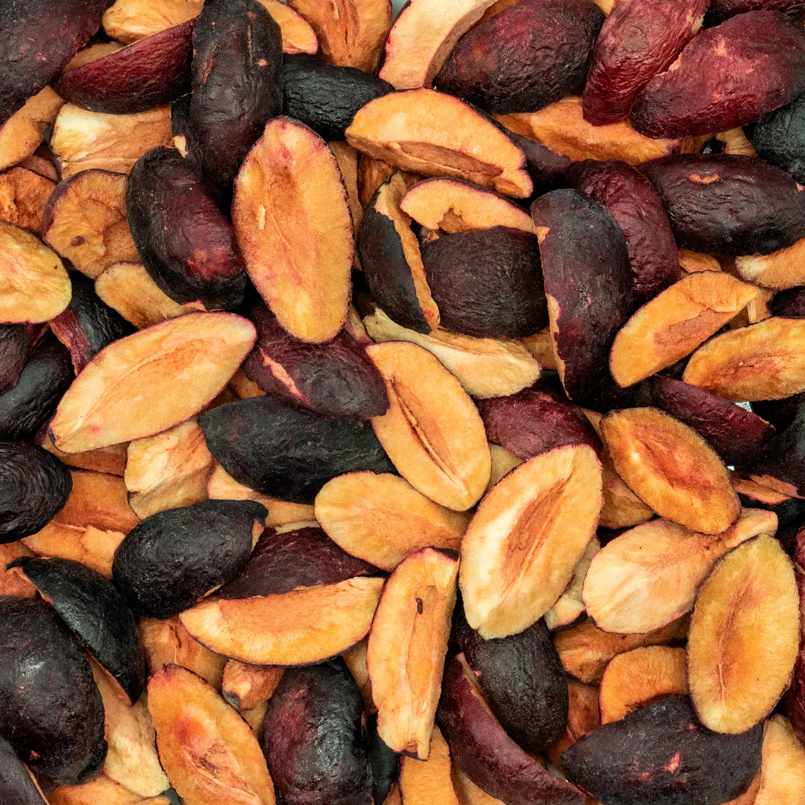 Mrazom sušené slivky sa vyrábajú z celých, zrelých, starostlivo vybraných plodov. Príjemne chrumkajú a skvele chutia. Hodia sa len tak samotné na desiatu, na ozdobenie rannej kaše, pridajte ich do jogurtu alebo domáce granoly. Skúste ich použiť pri pečení a varení.