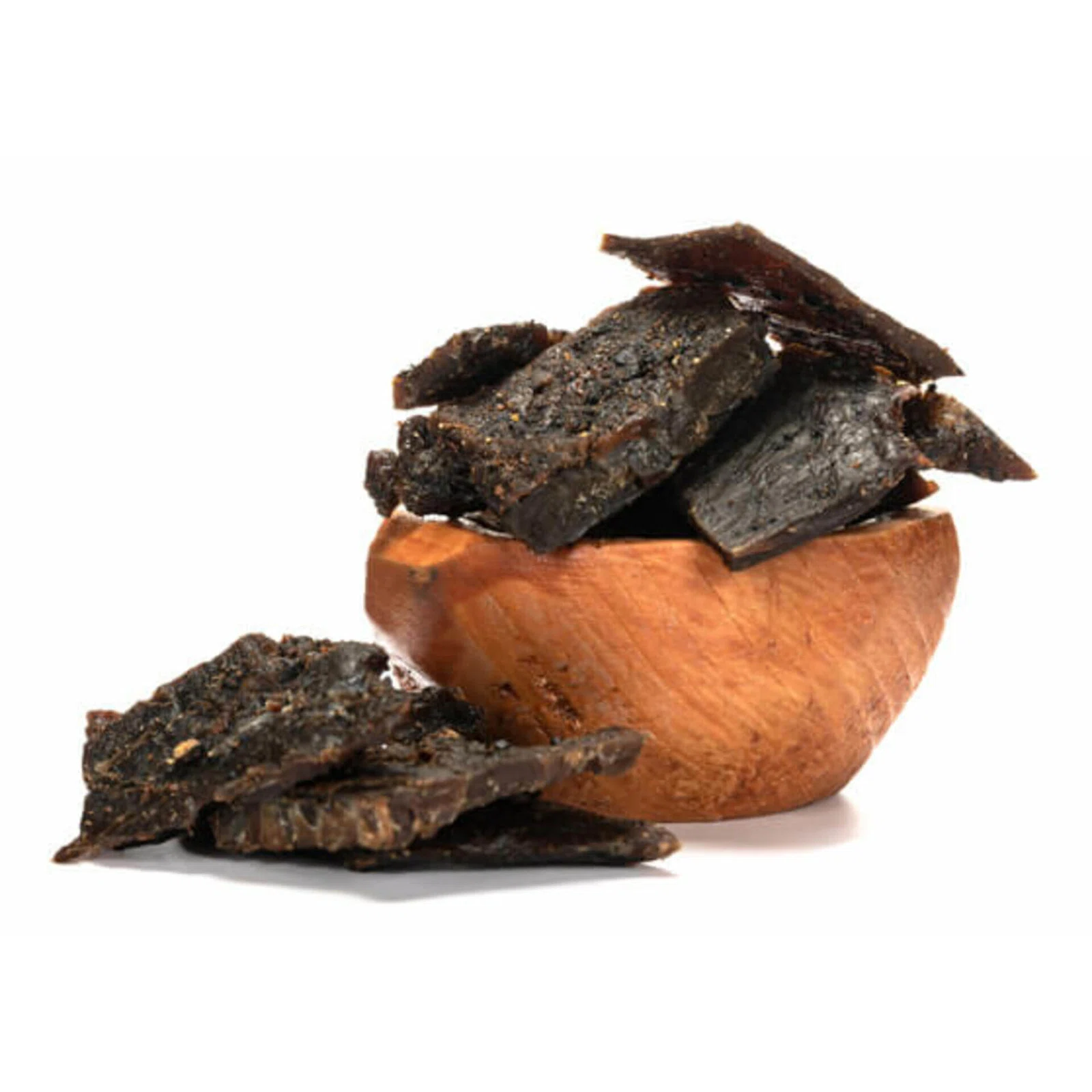 - Zloženie: Hovädzie mäso, sója, fermentovaná pšenica (bez lepku), jedlá soľ, prírodná aróma, ocot kvasný liehový, fruktózový sirup, brusnicový džem, cukor, nové korenie, čierne korenie, rasca, horčica, borievka, zázvor.