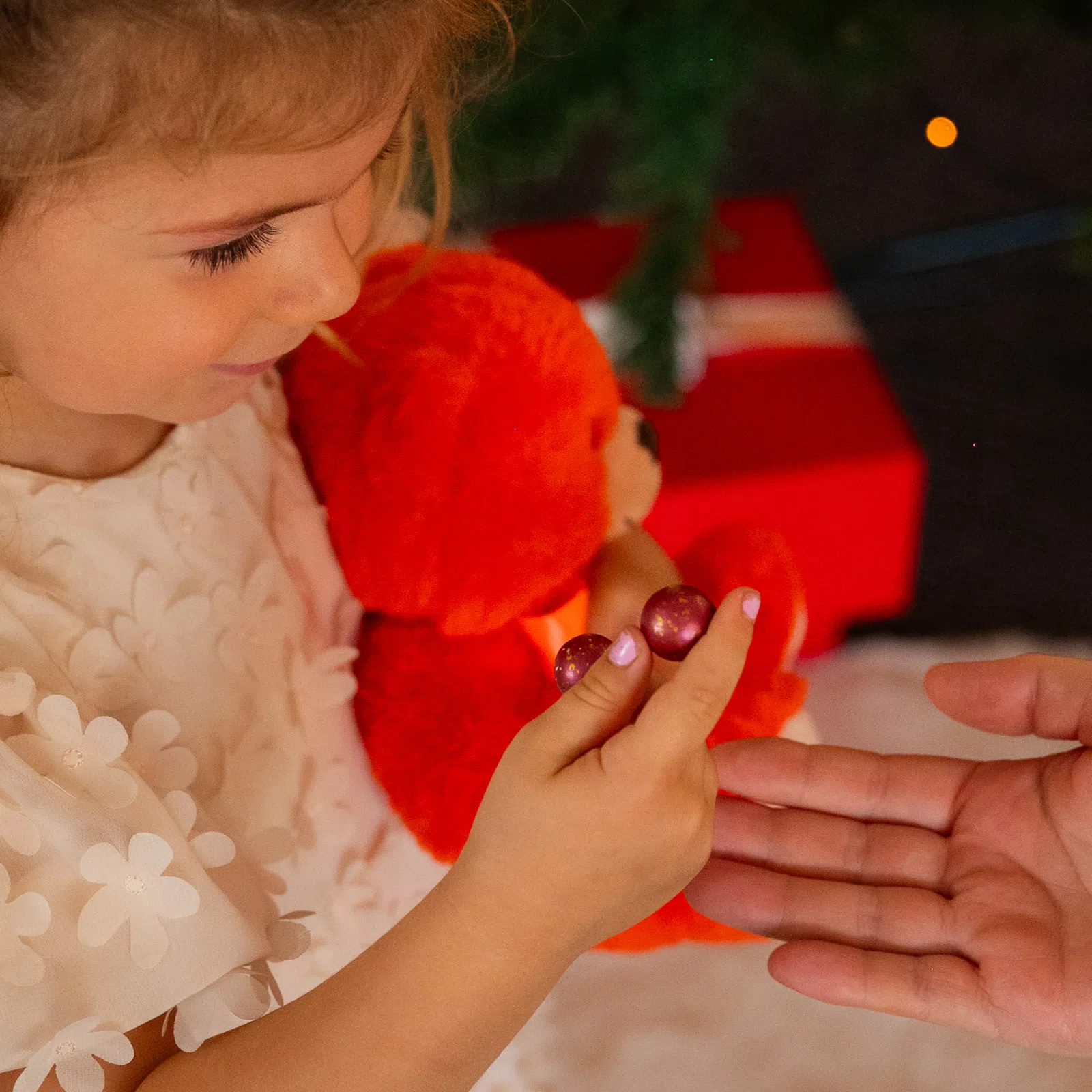 Na prvý pohľad vyzerajú naše krásne červeno-zlaté trblietavé guličky ako ozdoba. A je to do istej miery pravda, až na to, že táto krásna trblietavá vec sa dá jesť! Naozaj! A chutí fakt parádne – po perníčkoch. V skutočnosti ide o naozaj chrumkavé cereálne guličky obalené v kakaovej poleve a cukrovej trblietavej kôrke. Keď k tomu pridáte fakt, že sme guličky zabalili do krásneho vianočného obalu, dostanete skrz skrz vianočný jedlý darček ako vyšitý. Guličky sa rovnako krásne vyjímate ako ozdoba na sviatočnom stole, ktorú po skončení hodovania môžete sniesť ako doslova zlatú bodku na záver.
