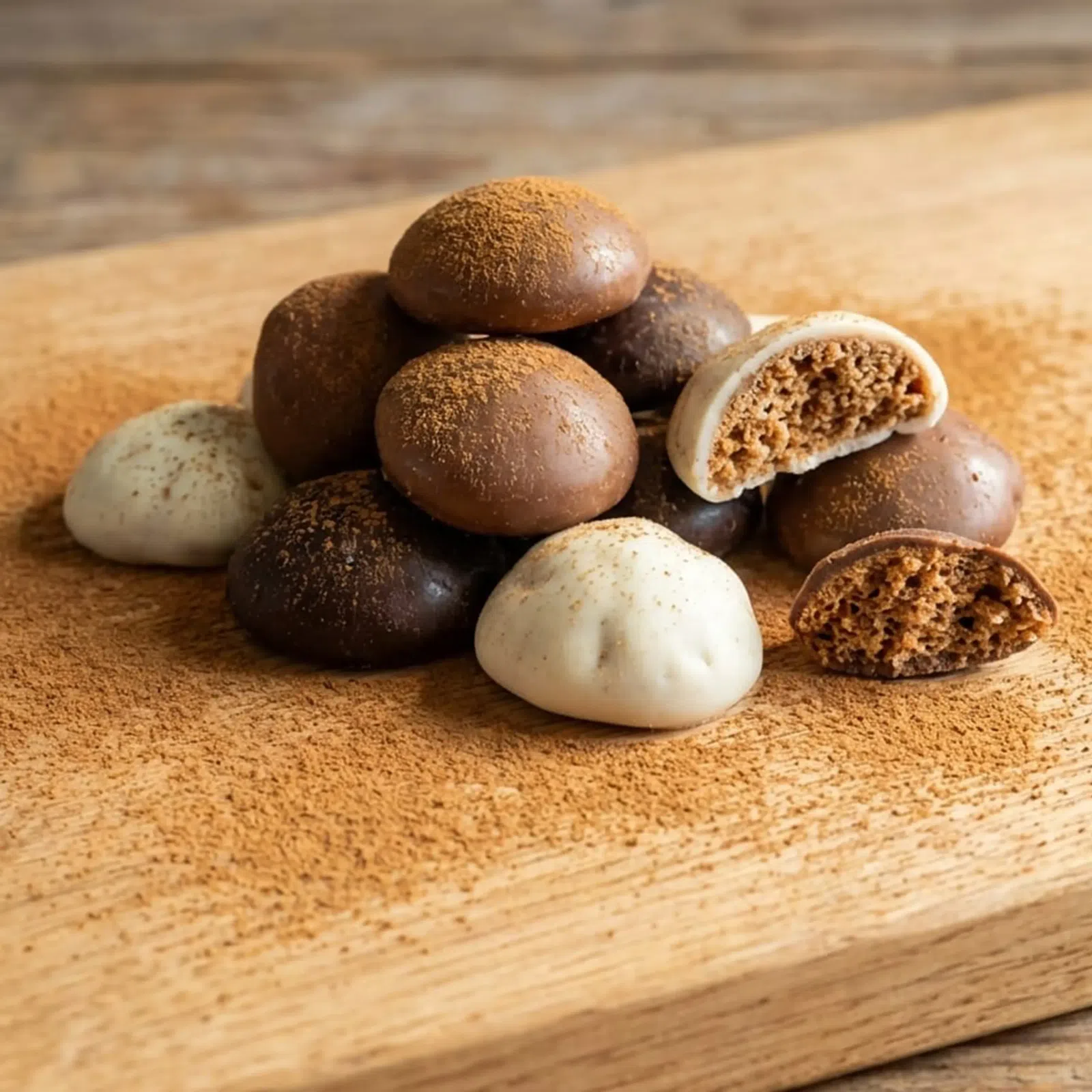 Trojfarebné sušienky v čokoláde potešia každého milovníka sladkých dobrôt s nádychom tradície. Chrumkavé perníkové sušienky sme zahalili do troch druhov kvalitnej čokolády – mliečnej, horkej a bielej, aby si na svoje prišli všetci, ktorí milujú poctivú kombináciu korenistej chuti a jemnej sladkosti.