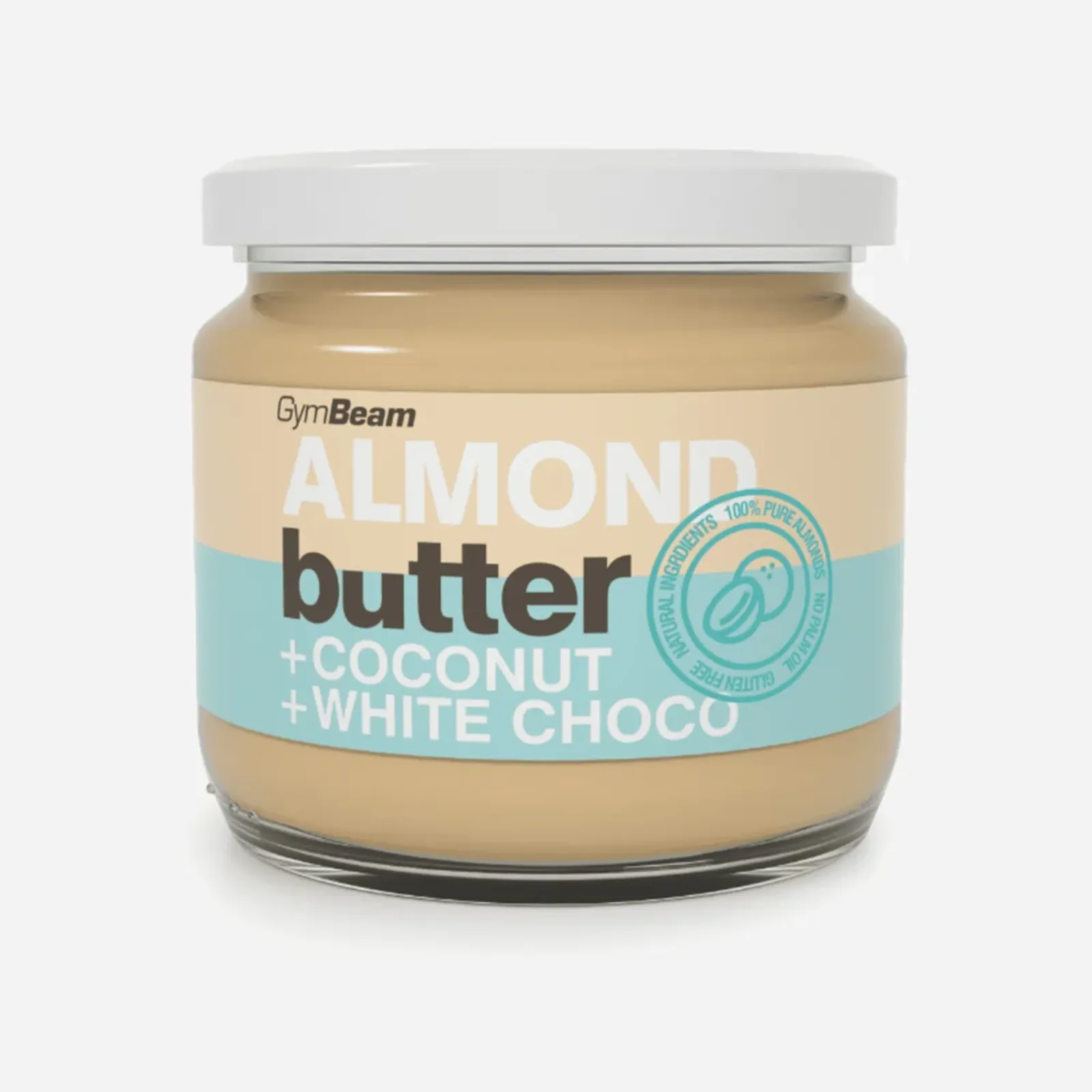 GymBeam Mandľové maslo s kokosom a bielou čokoládou, 340 g