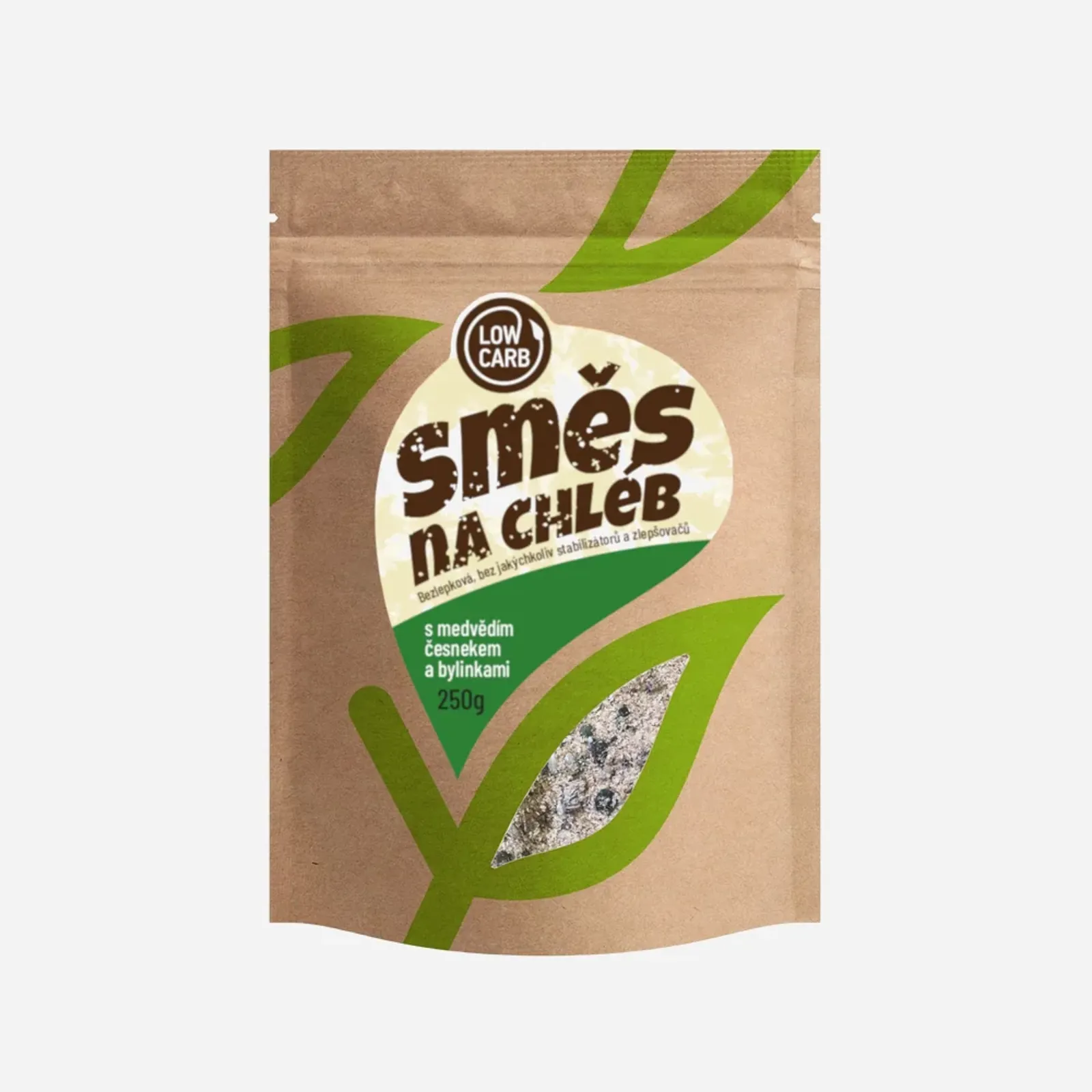 Zmes na výrobu dvoch bezlepkových chlebov s nízkym obsahom sacharidov a cukrov (LOW CARB). Vďaka bezlepkové zmesi dokáže bochník chleba s medvedím cesnakom upiecť aj začiatočník. Zmes obsahuje vyvážený pomer všetkých obľúbených Low carb potravín. Chlieb možno upiecť aj v domácej pekárni.