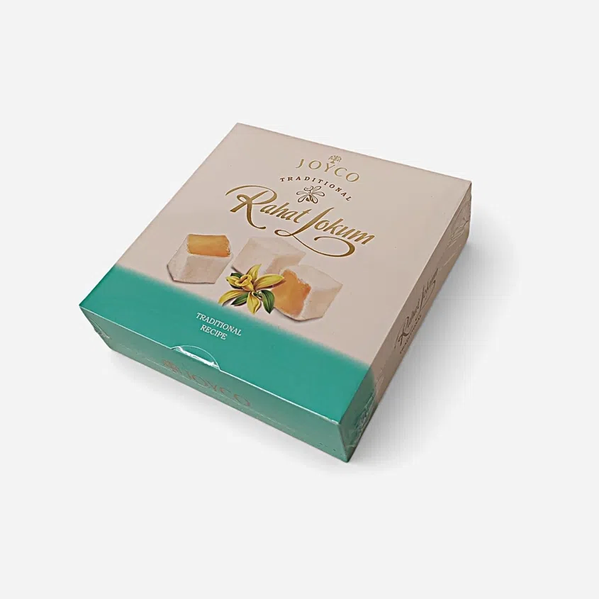 Tradičná sladkosť z blízkeho východu Rahat-Lokum s lahodnou vanilkovou chuťou. Vyrobené z cukru a škrobu, obalené v práškovom cukre.