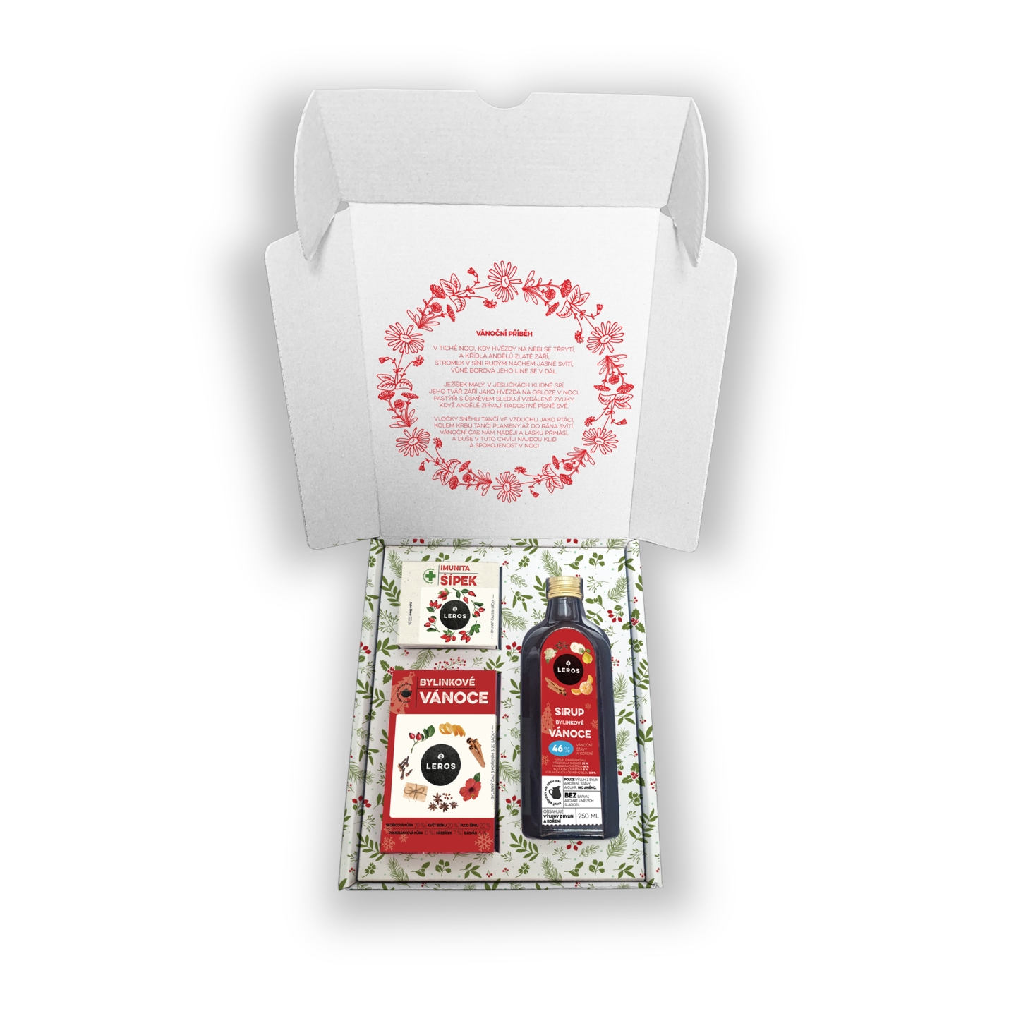 Žiadané darčekové balenie, ktoré kombinuje sirup s čajom.