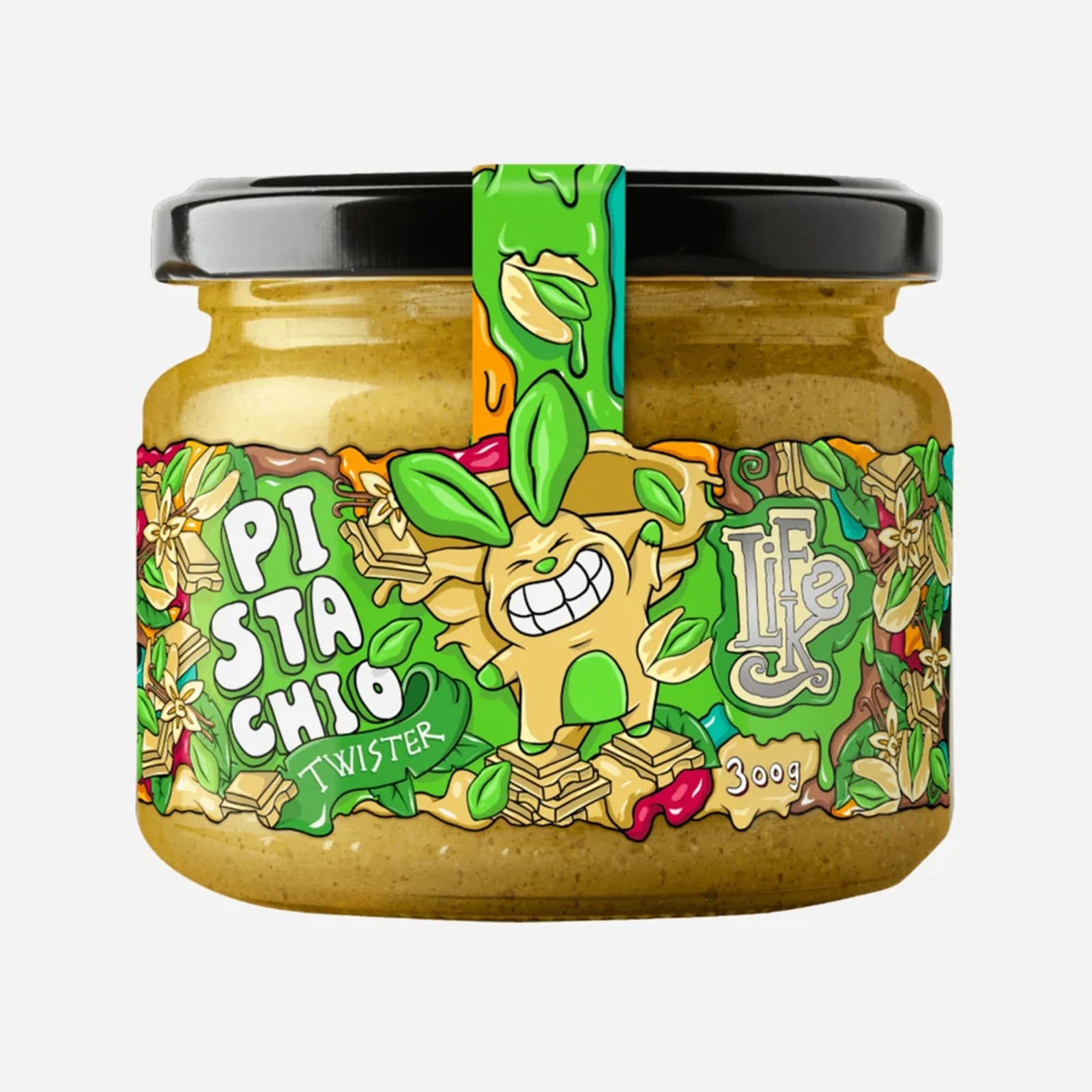 Pistácie je orechová nátierka z pražených pistácií s bielou čokoládou a vanilkou.