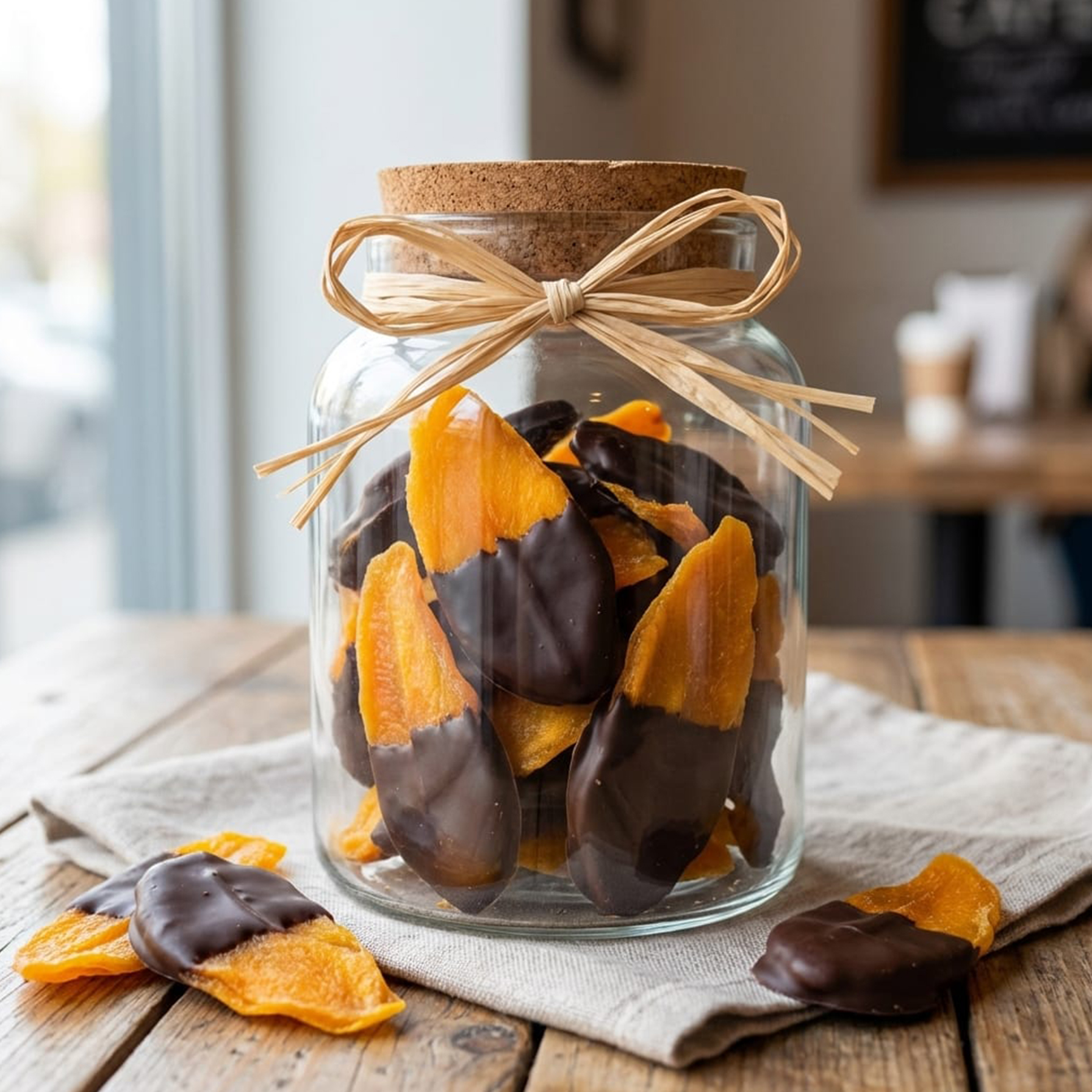 Doprajte si šťavnaté sušené mango z polovice máčané v kvalitnej horkej čokoláde. Je to ideálne spojenie exotickej sladkokyslosti a intenzívnej kakaovej chuti. Skvele sa hodí ako rýchla desiata do práce, malá odmena po náročnom dni alebo štýlové pohostenie pre návštevu. A pozor – mizne rýchlejšie, než by ste čakali.