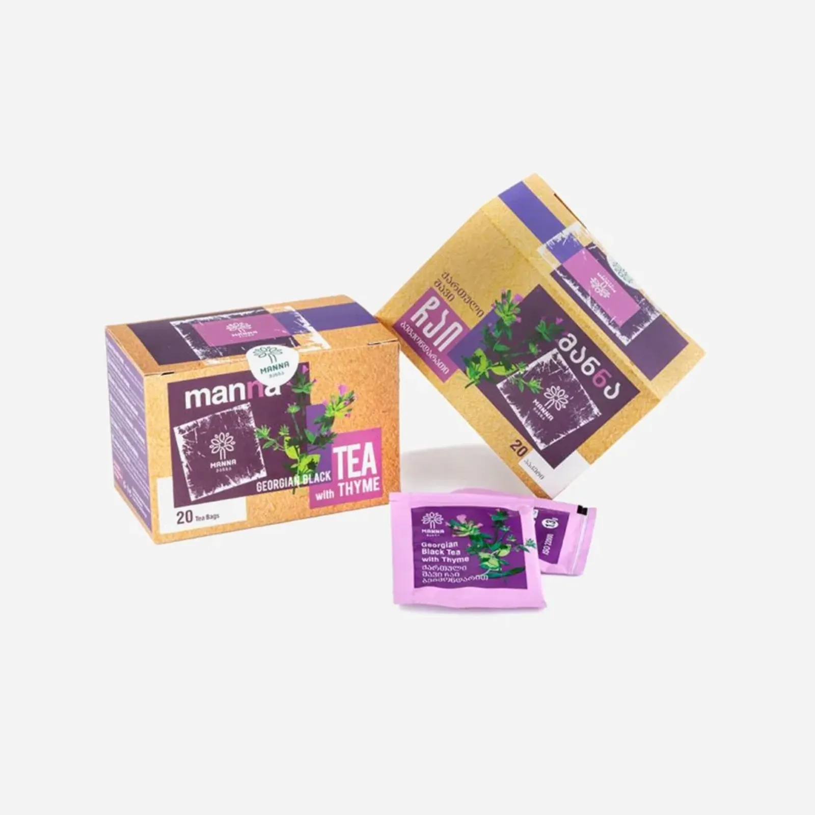 Vlastnosti a výhody: Gruzínsky čierny čaj Manna má jedinečnú, špecifickú chuť tvorenou prímesou horského tymiánu (materinej dúšky). Pre výrobu tohto čaju je používaný výlučne ručne zbieraný tymián rastúce vo voľnej prírode. Technologický proces jeho spracovania je zameraný na zachovanie pôvodného prírodného arómu. Je bohatý na vitamíny A, B a C a minerály ako je vápnik, železo či draslík a je rovnako prirodzeným zdrojom kyseliny listovej. Tymián je prospešný pre ľudí trpiacich nespavosťou, chorobami pľúc a priedušiek, astmou alebo bronchitídou. Podporuje zdravý metabolizmus a jeho ďalšie zdravotné prínosy spočívajú v priaznivých účinkoch na činnosť srdca, obličiek a mozgových buniek. Pravidelná denná konzumácia tohto čaju prispieva k uvoľneniu stresu a chronickej únavy.