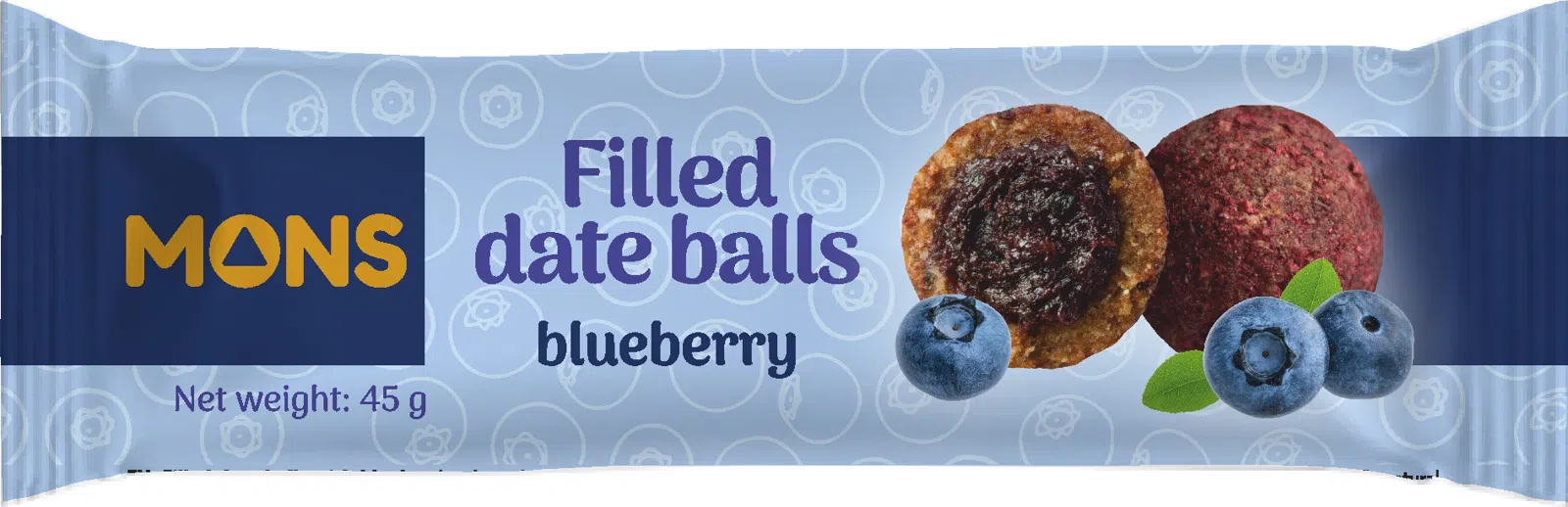 Mons Plnené datľové guličky s čučoriedkami, 45 g