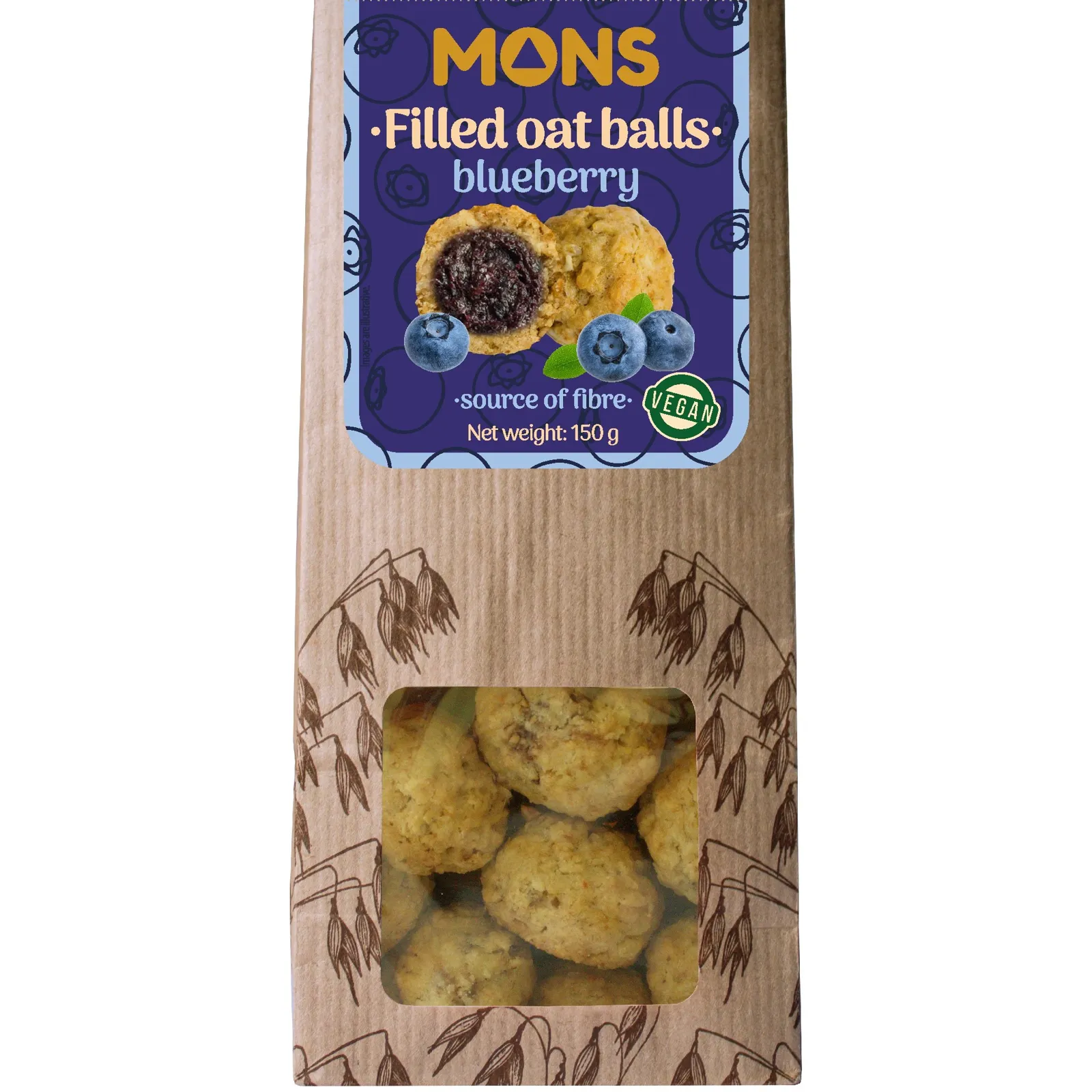 Mons Plnené ovsené guličky s čučoriedkami, 150 g