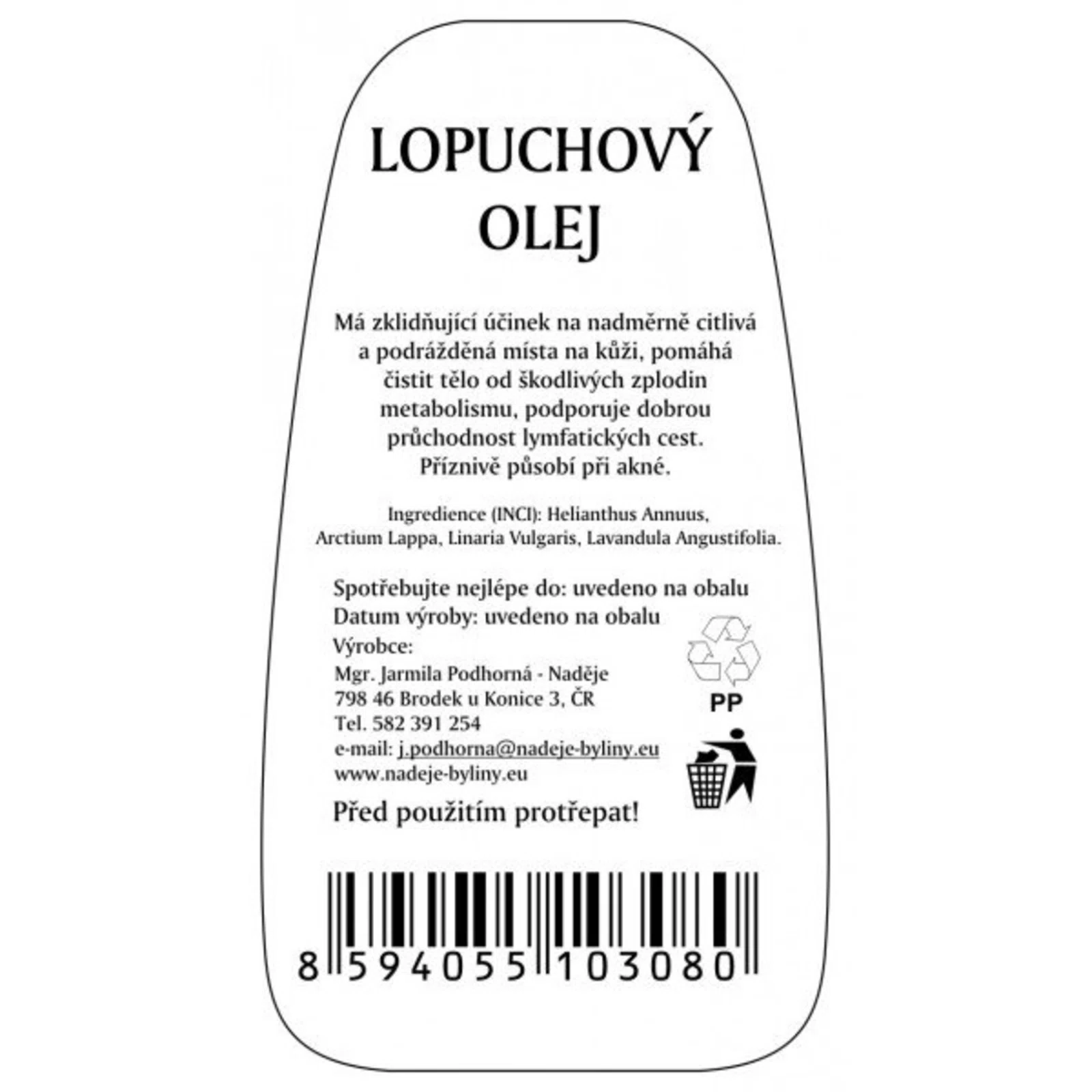 Naděje - Podhorná, Lopuchový olej - koža, lymfa 200 ml
