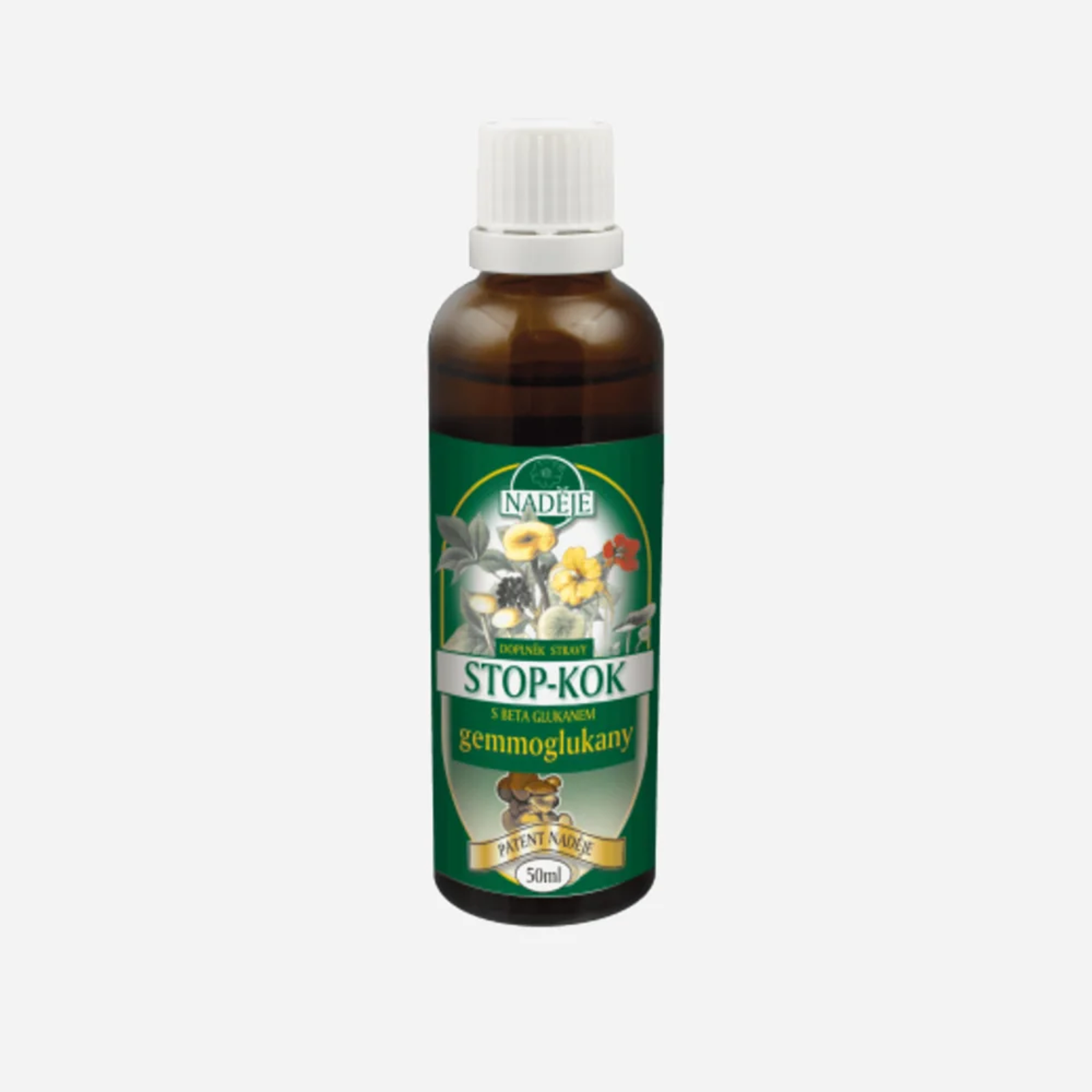 Naděje Stop - kok je zmes topoľa čierneho, vŕby bielej, eleuterokoku ostnatého, plamienky zimnej, kapucínka väčšia a betaglukanu podporuje organizmus.