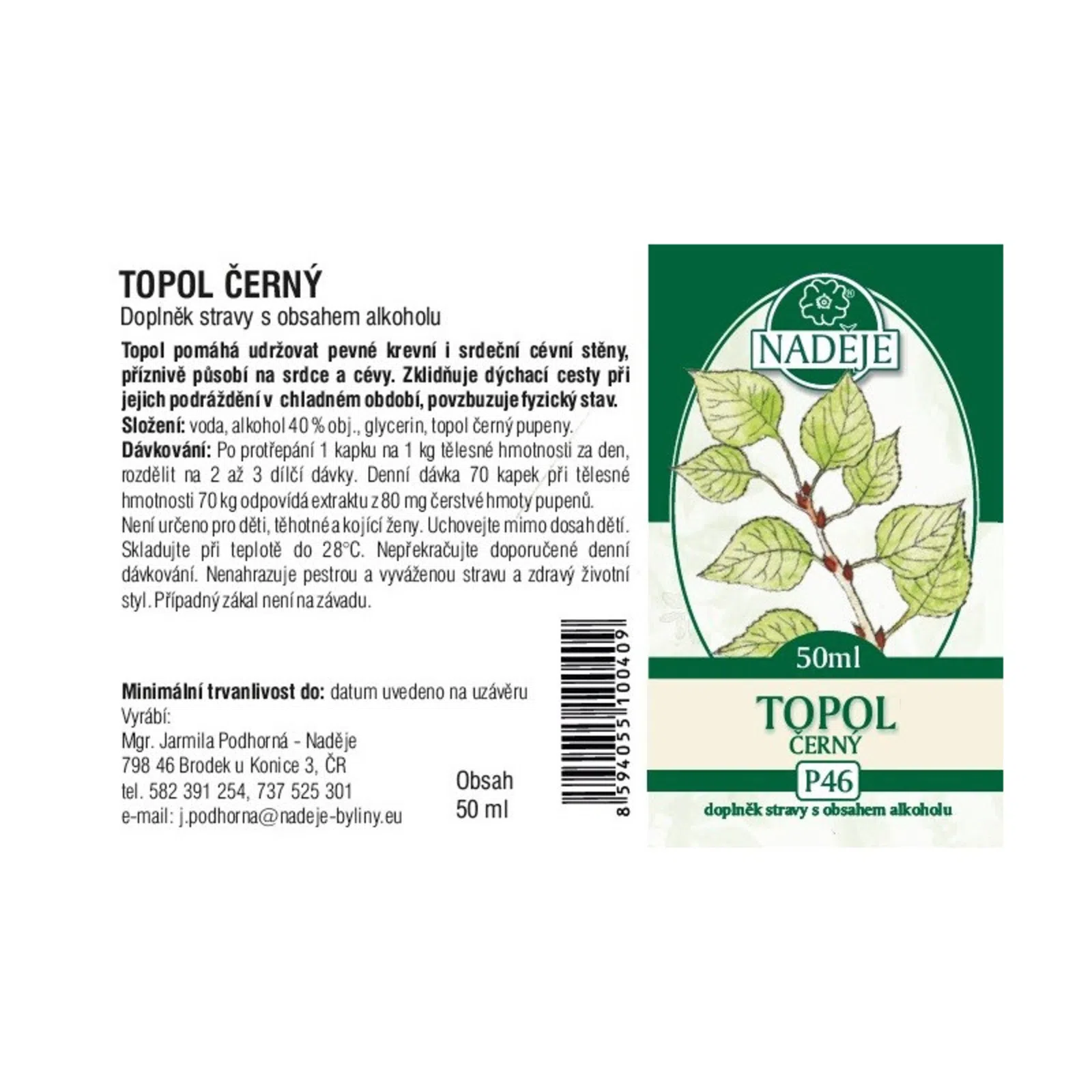 Naděje - Podhorná Topoľ čierny tinktúra z púčikov 50 ml