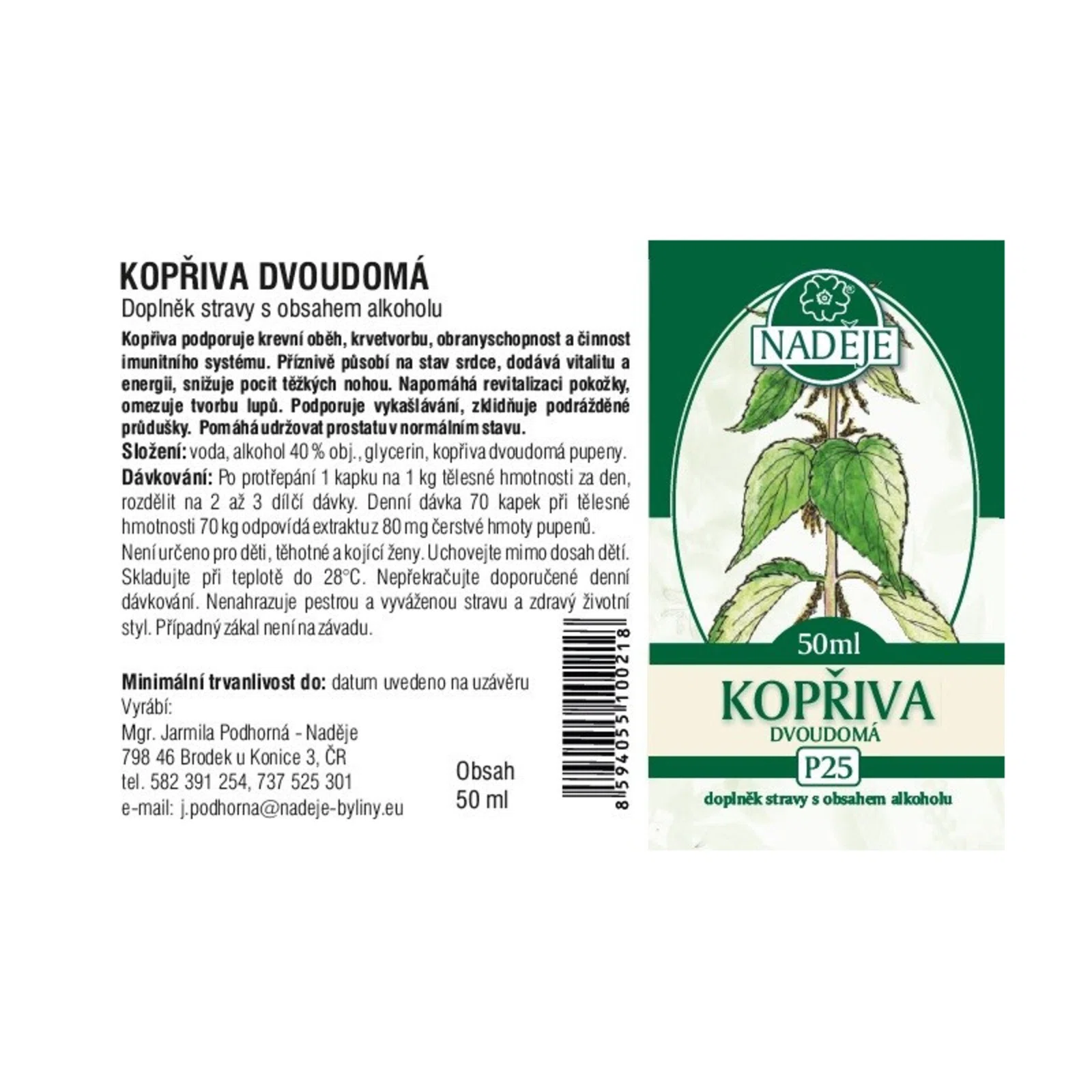 Naděje - Podhorná Žihľava dvojdomá tinktúra z púčikov, 50 ml